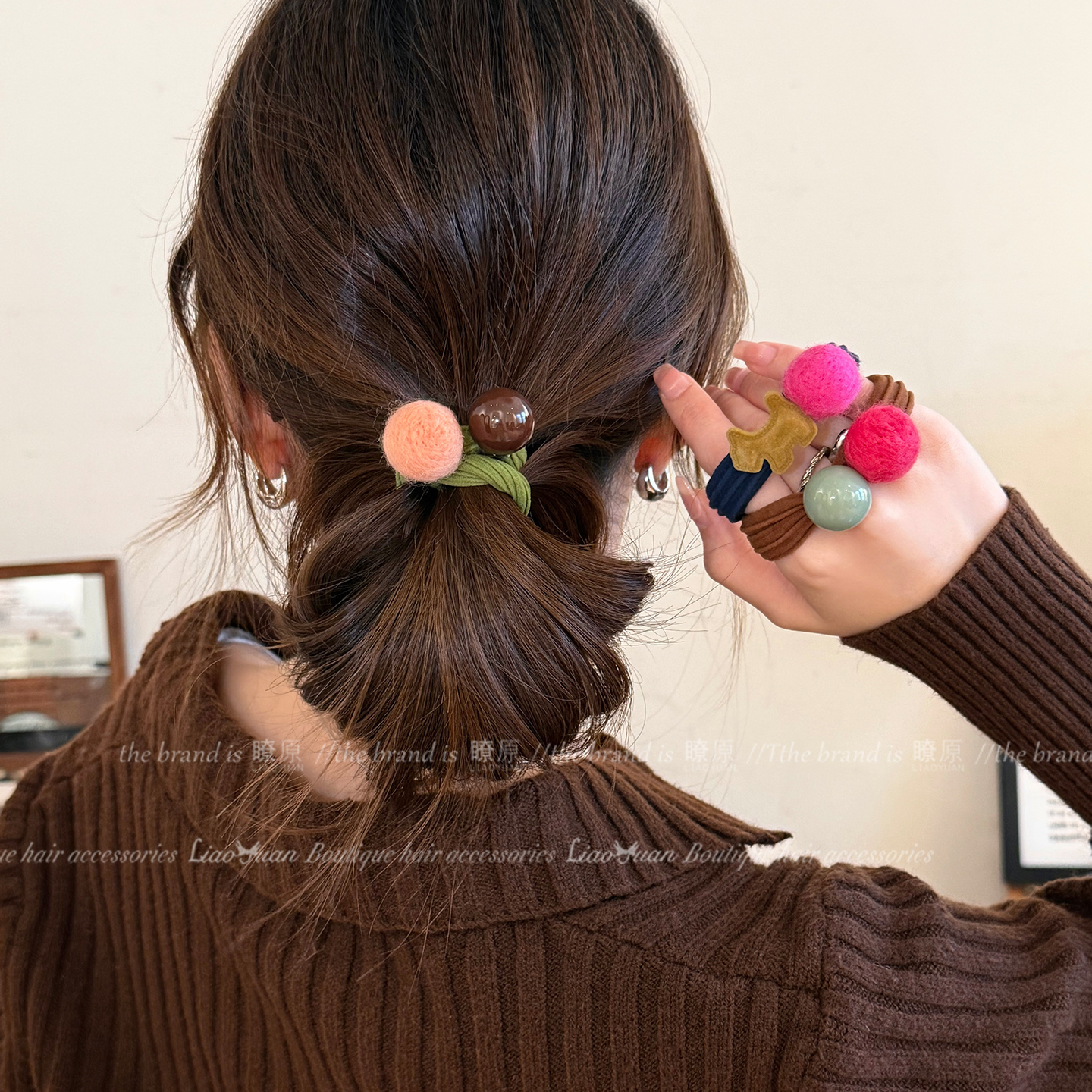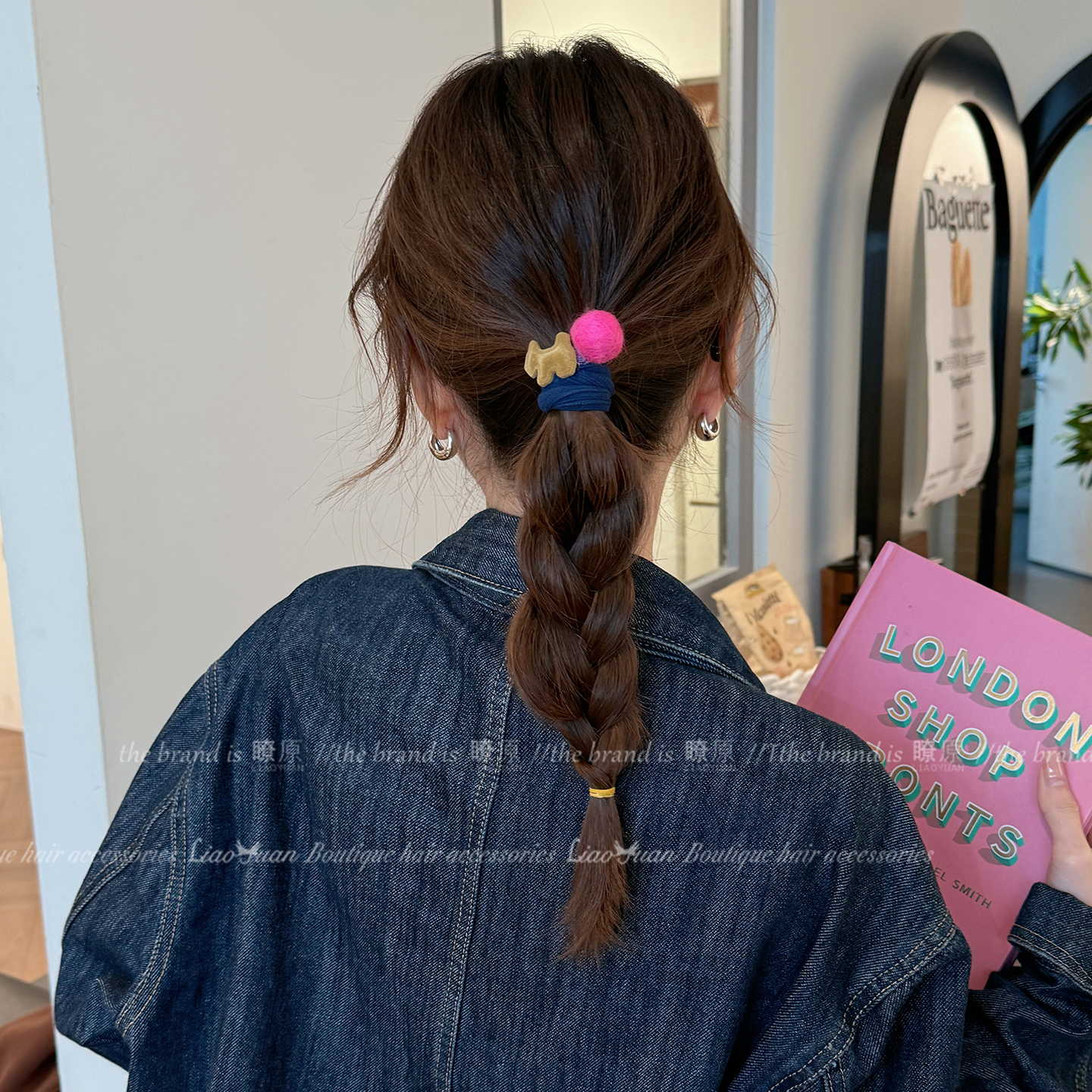 韩国ins风毛毡球小狗发圈2025新款 耐用弹力大发绳扎头发皮筋头绳