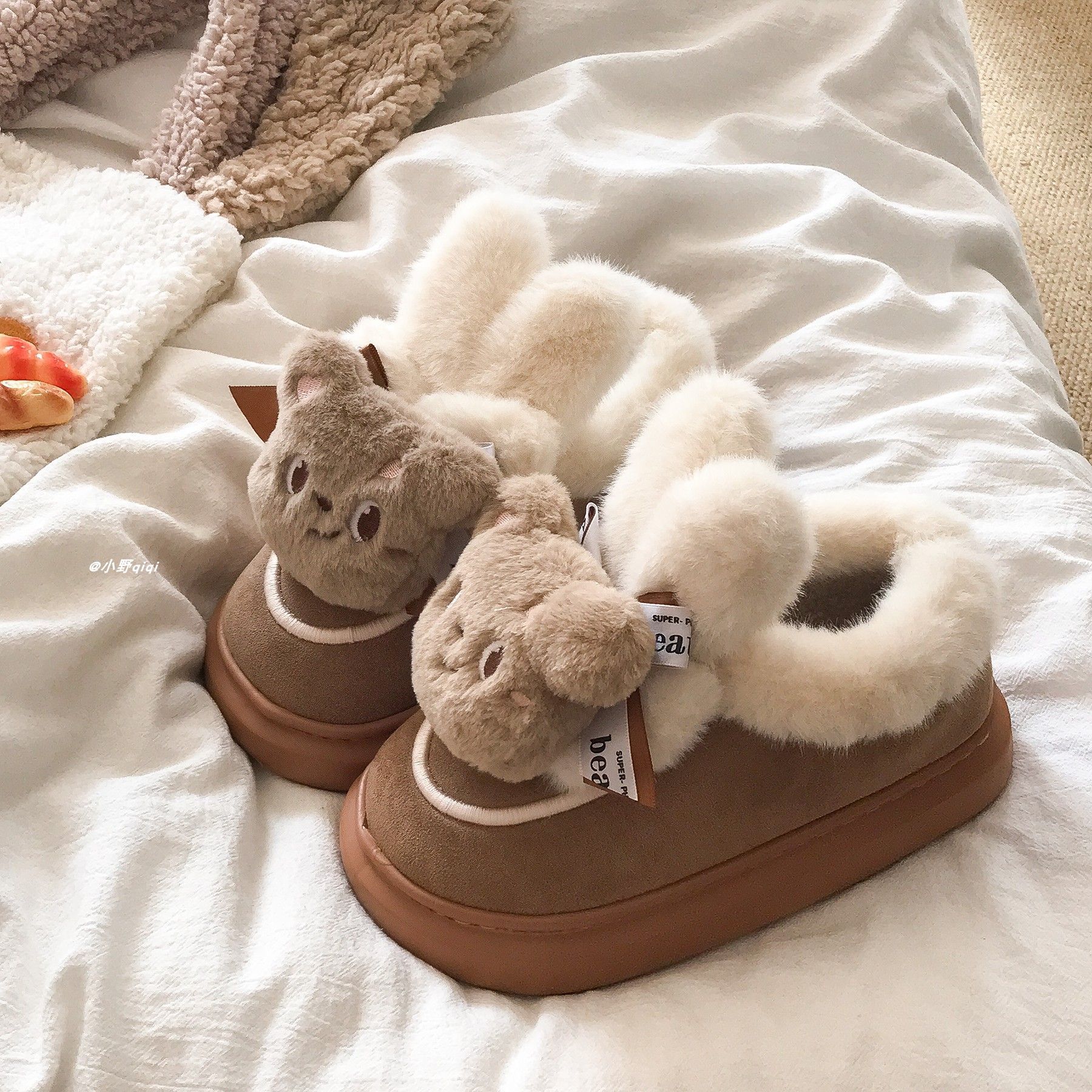 包跟棉拖鞋 外穿保暖雪地靴防滑厚底居家情侣毛毛绒家用男 女秋冬季