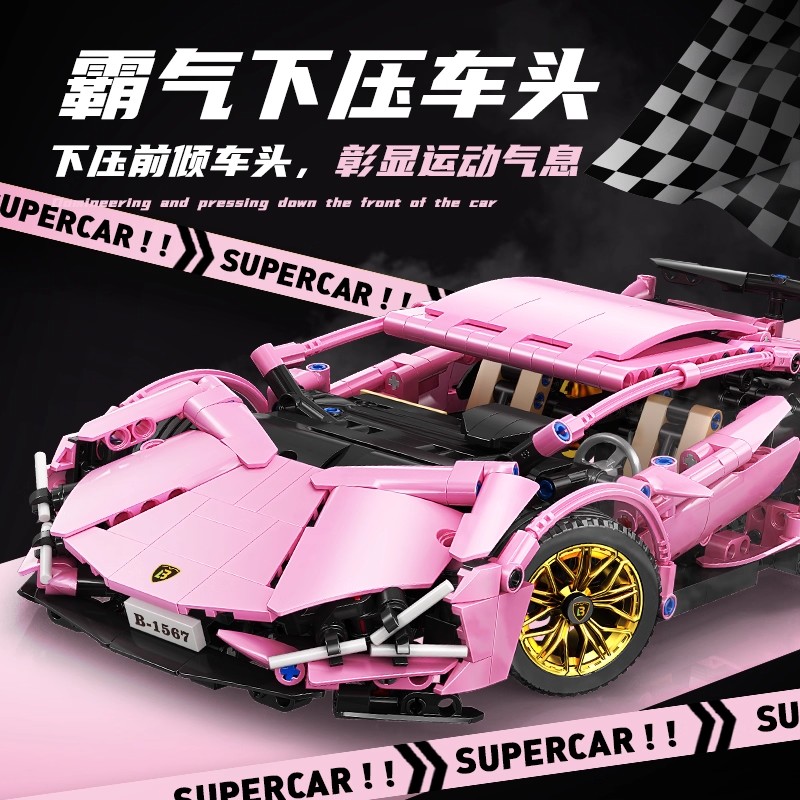 2025新款 积木玩具礼物男女孩 粉色兰博遥控基尼跑车高难度益智拼装