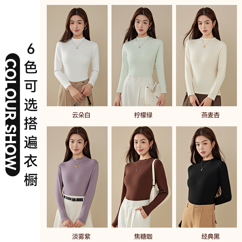 简云羊毛蚕丝德绒无痕半高领打底衫 中领秋衣女发热内衣保暖上衣HD