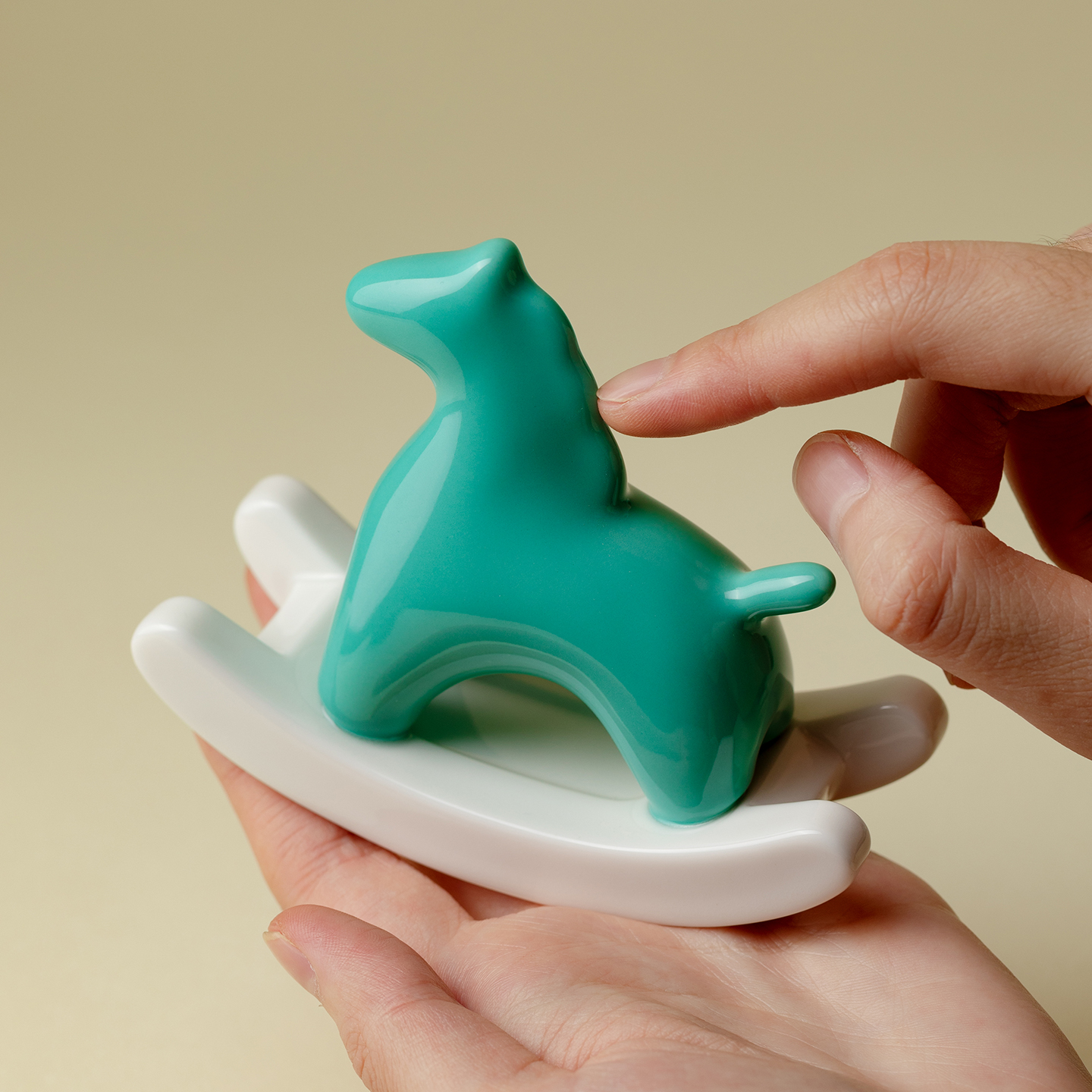 里作中式 摇摇马小茶宠中国红创意陶瓷茶桌摆件工艺品乔迁送礼礼品