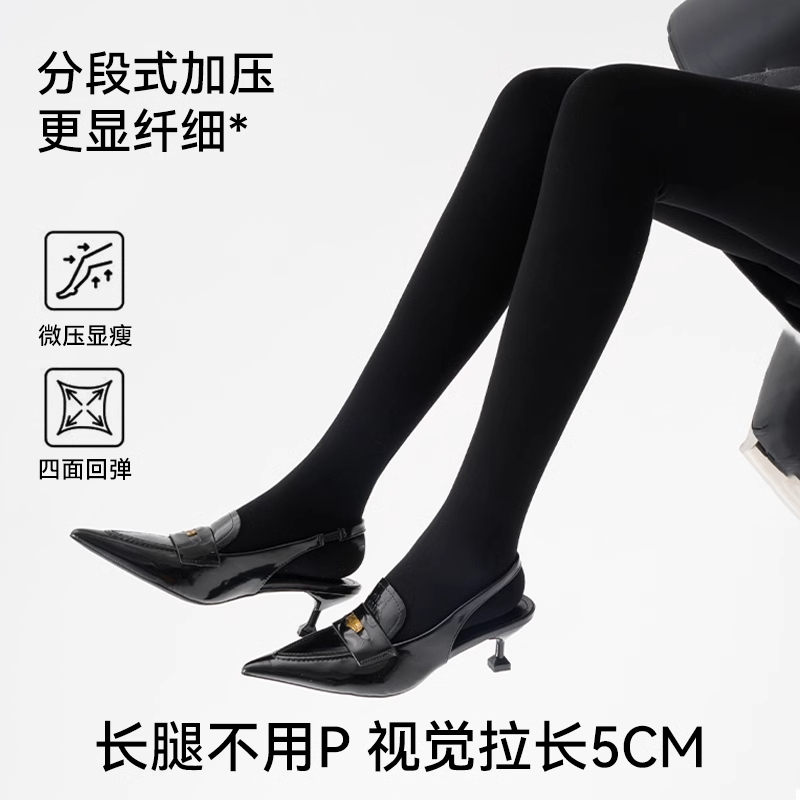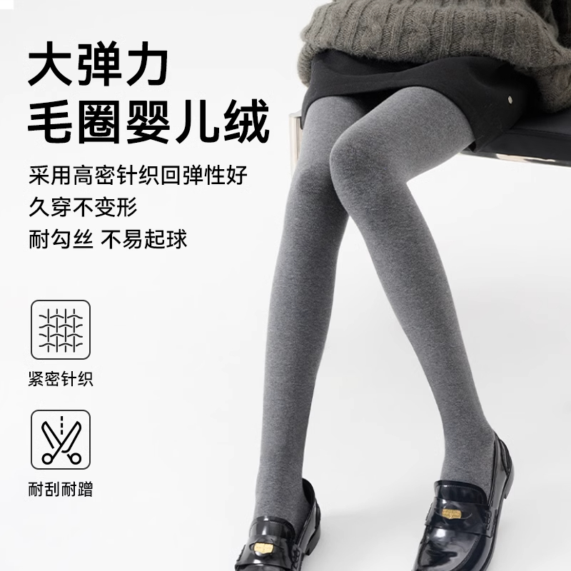 高弹 女加厚保暖外穿浅中灰秋冬季 黑灰色连裤 袜子女压力显瘦打底裤
