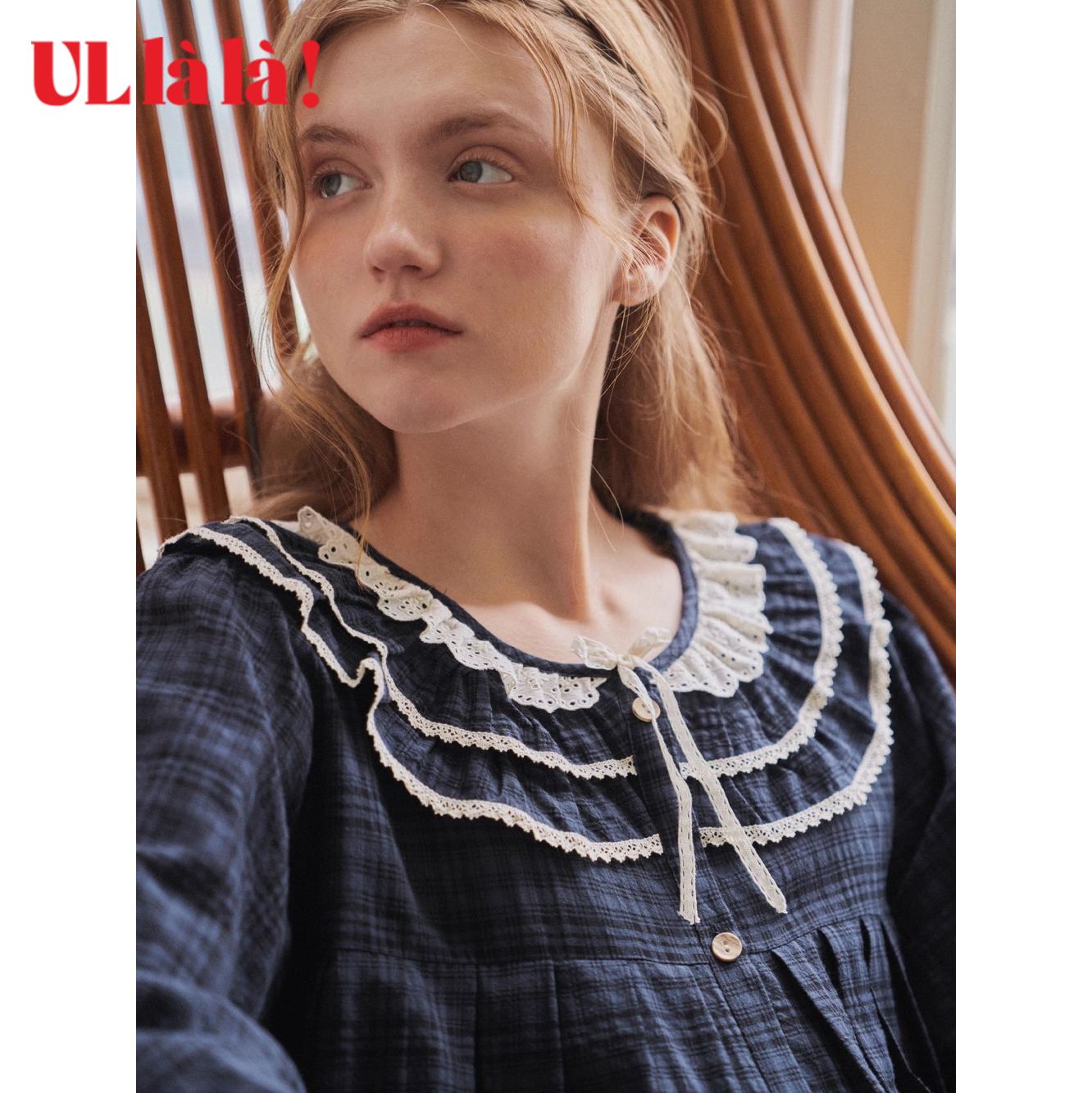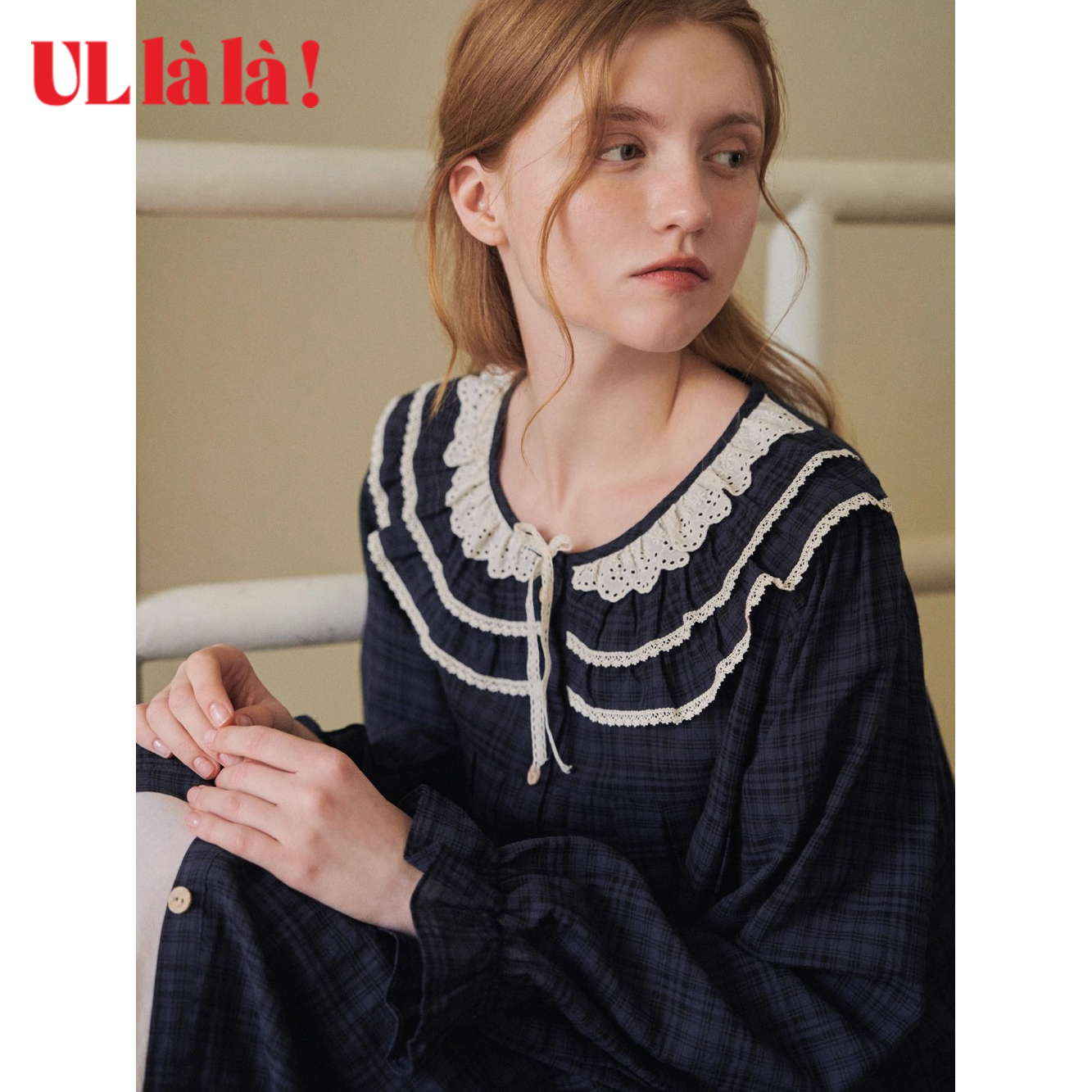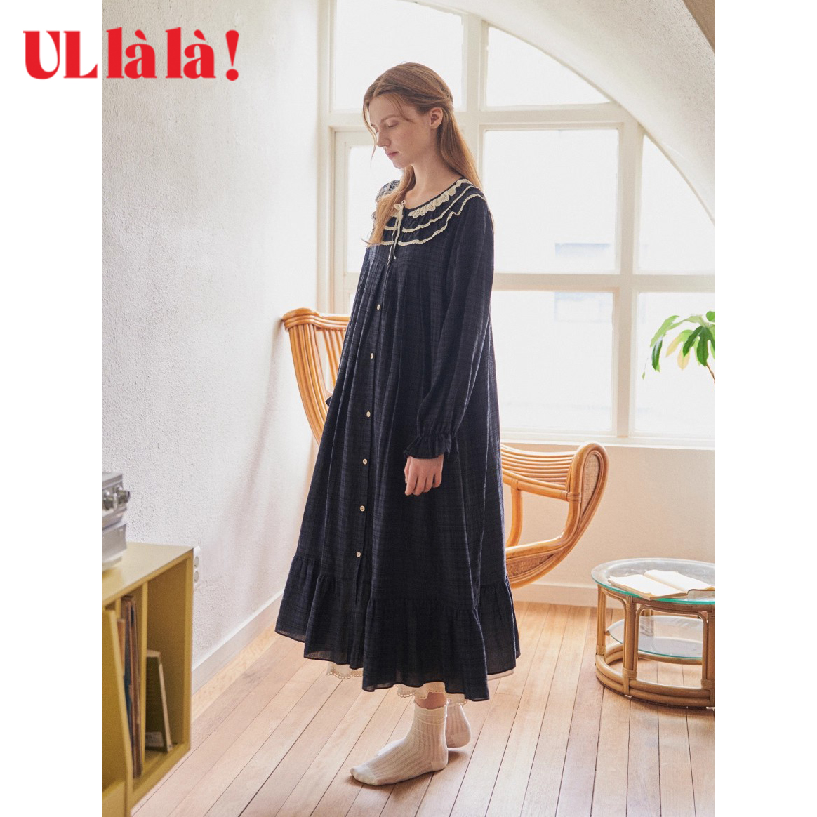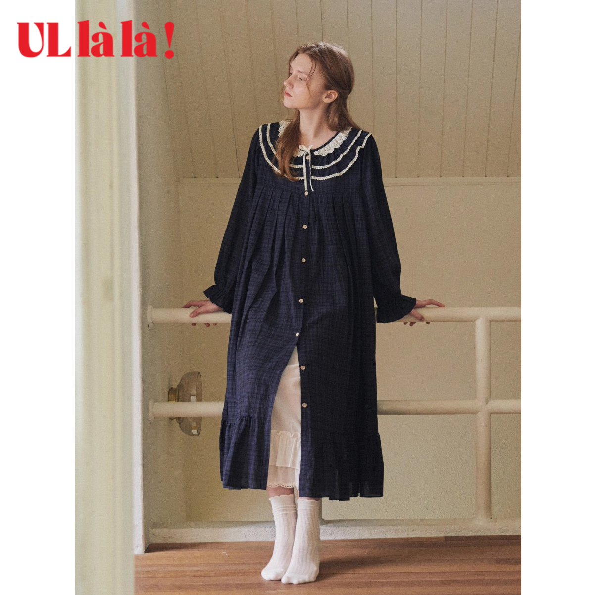 长裙休闲开衫 Ullala乌拉拉韩国进口家居服睡裙娃娃领秋季 复古长袖
