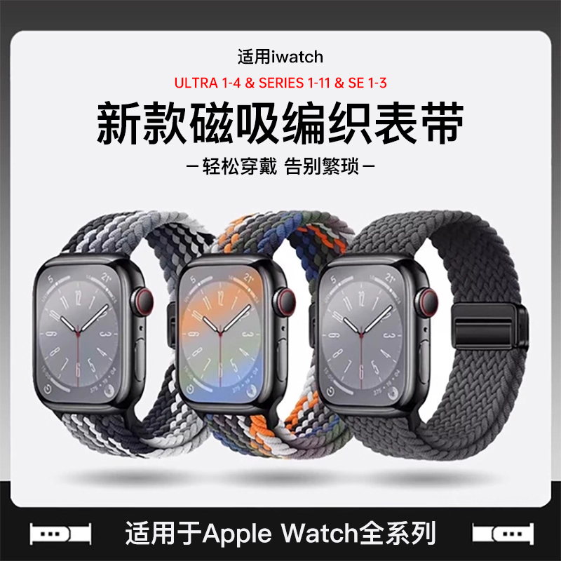 动派适用iwatch11表带S11苹果S10手表applewatch10新款 S9尼龙8编织磁吸7春夏SE3男高级ultra女运动iphone腕带