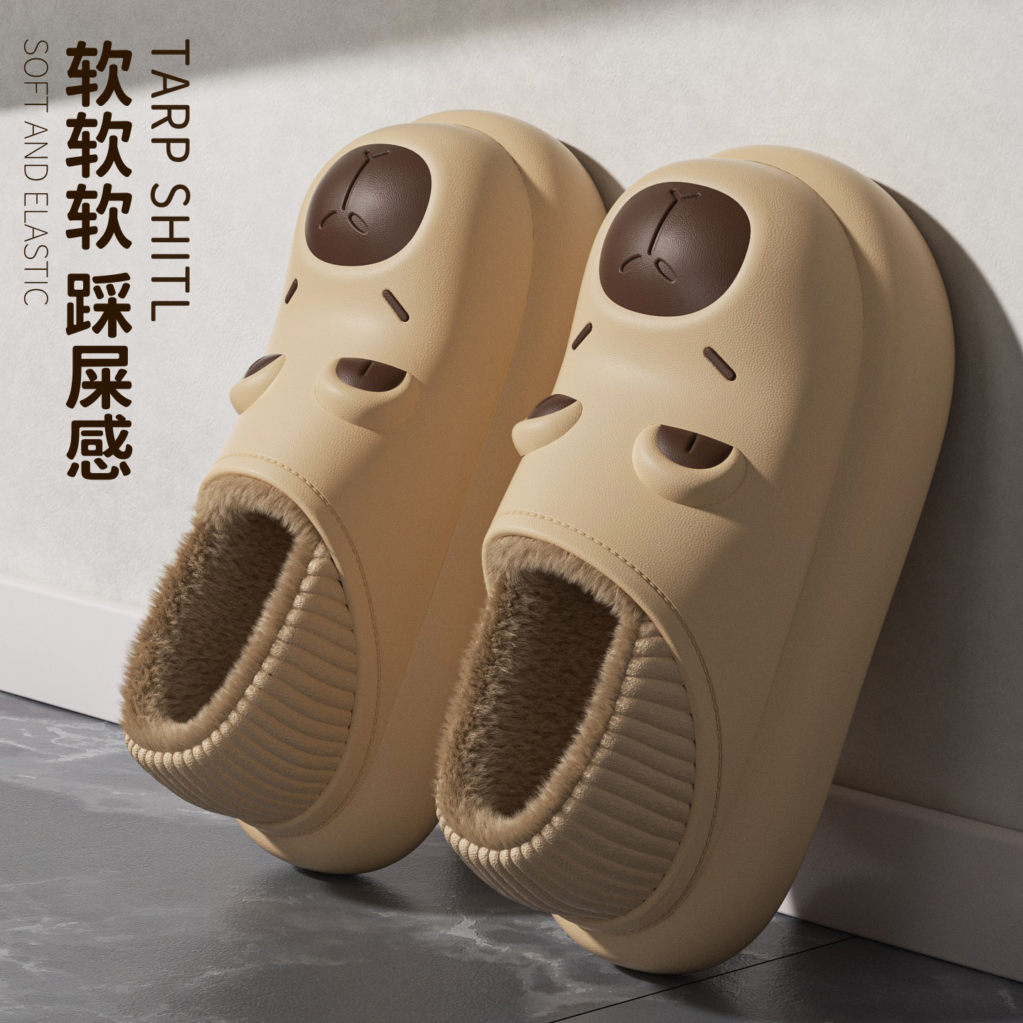 居家外穿防水防滑加绒加厚棉鞋 可爱水豚棉拖鞋 2025新款 冬季 男 女款
