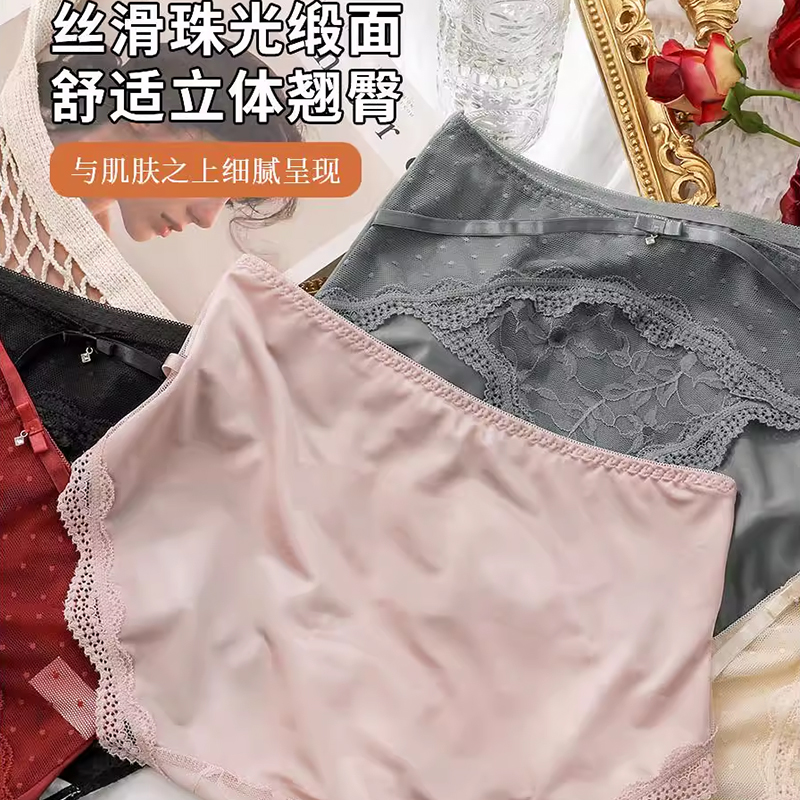 网纱纯欲勾人女生短裤 女士纯棉抗菌裆2025新款 性感蕾丝内裤 法式
