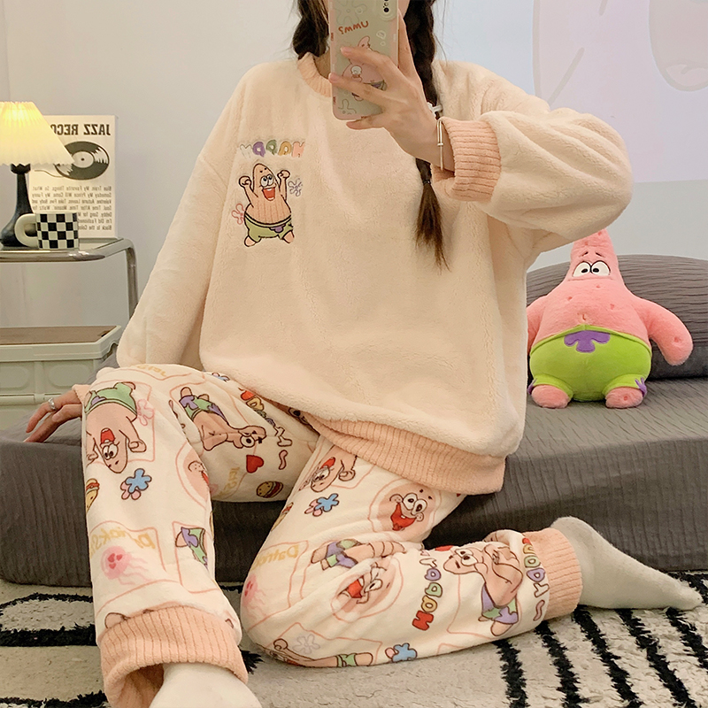 加厚大码 2023年新款 情侣家居服 珊瑚绒法兰绒暖暖套装 睡衣女秋冬季