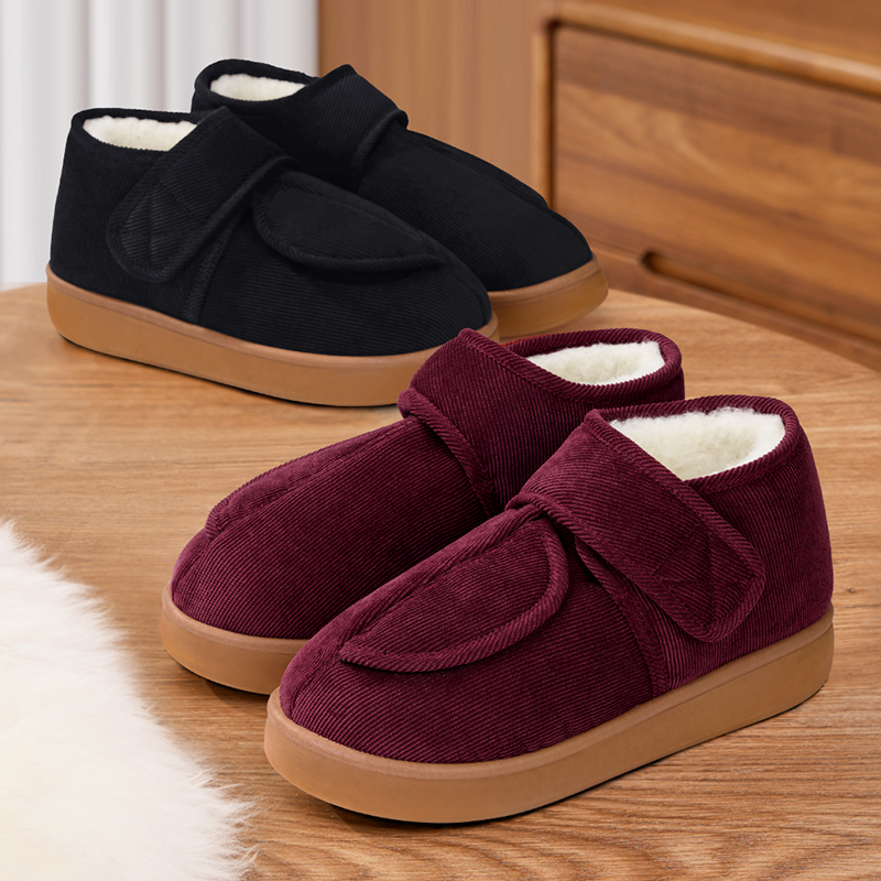 保暖中老年脚肿外穿家居男女包跟牛筋底防滑老人棉鞋 棉拖鞋 女冬季