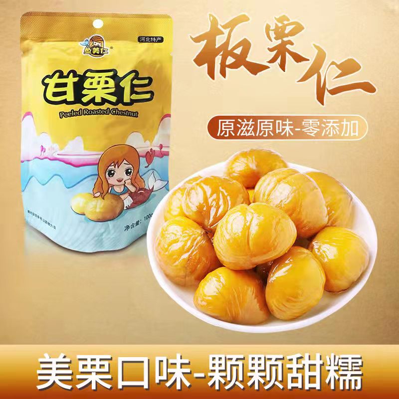 迁西原味板栗仁100gx8袋坚果小零食熟制去壳甘栗仁即食油栗子新鲜