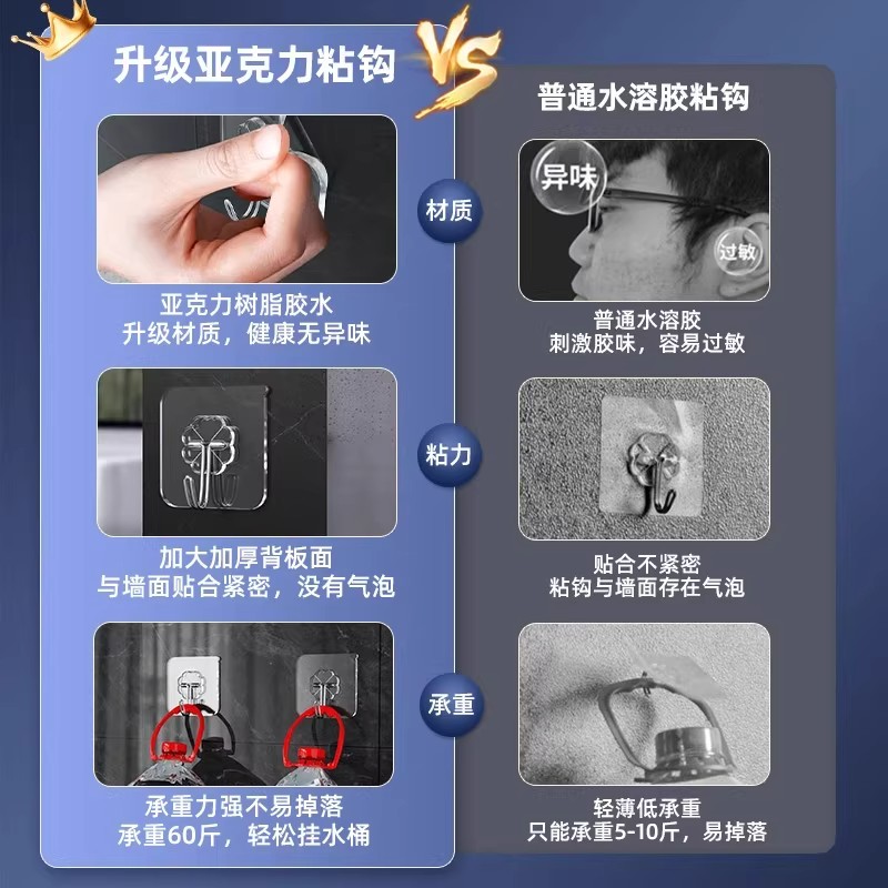 挂钩强力粘胶免打孔壁挂墙上承重透明无痕挂衣钩轻奢钩子粘贴粘钩