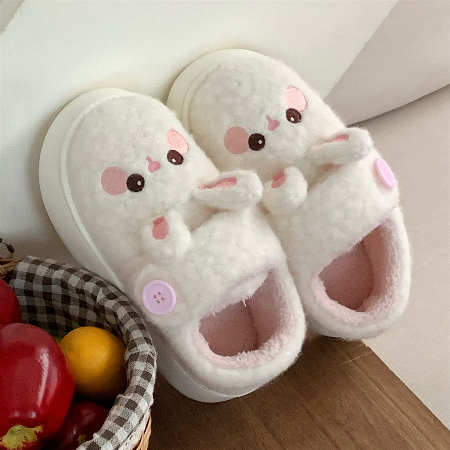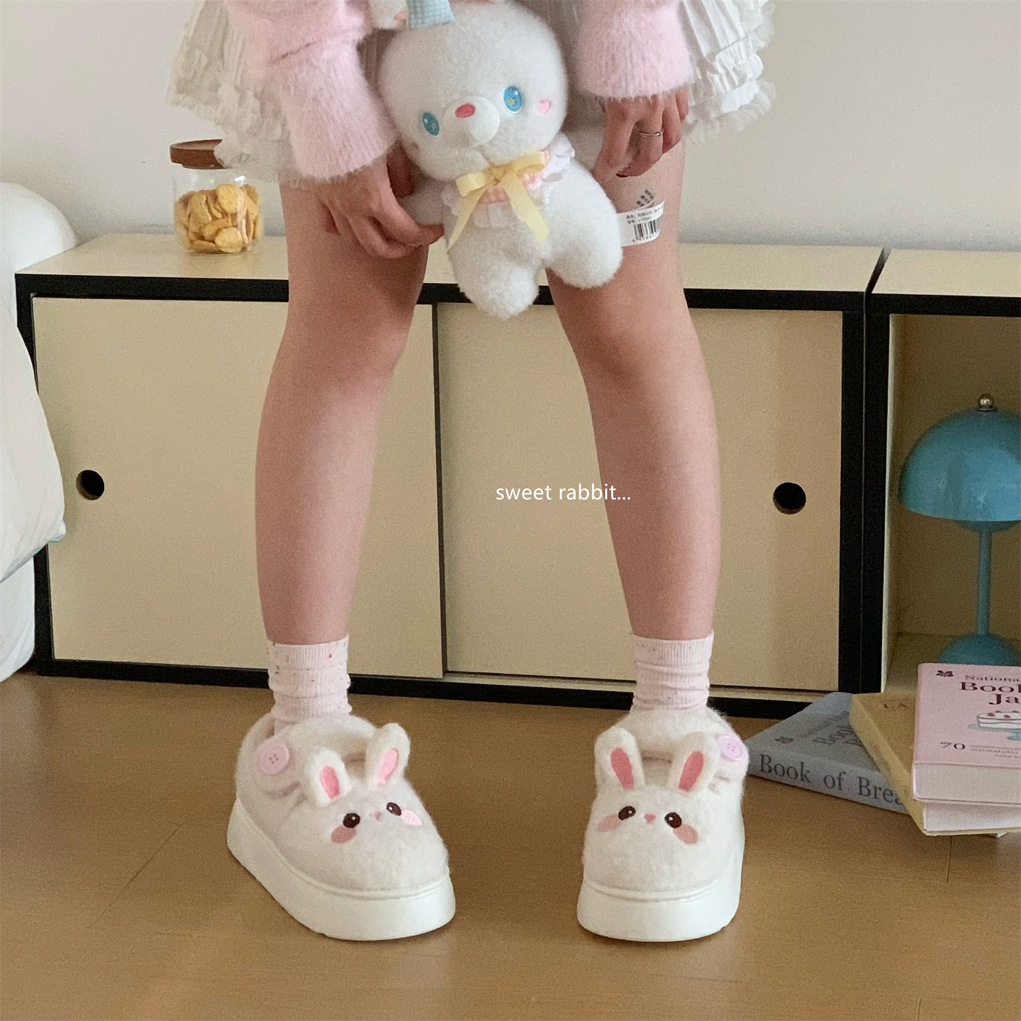 厚底外穿百搭棉鞋 户外穿时尚 女 勃肯面包鞋 加绒防滑软萌小兔子冬季
