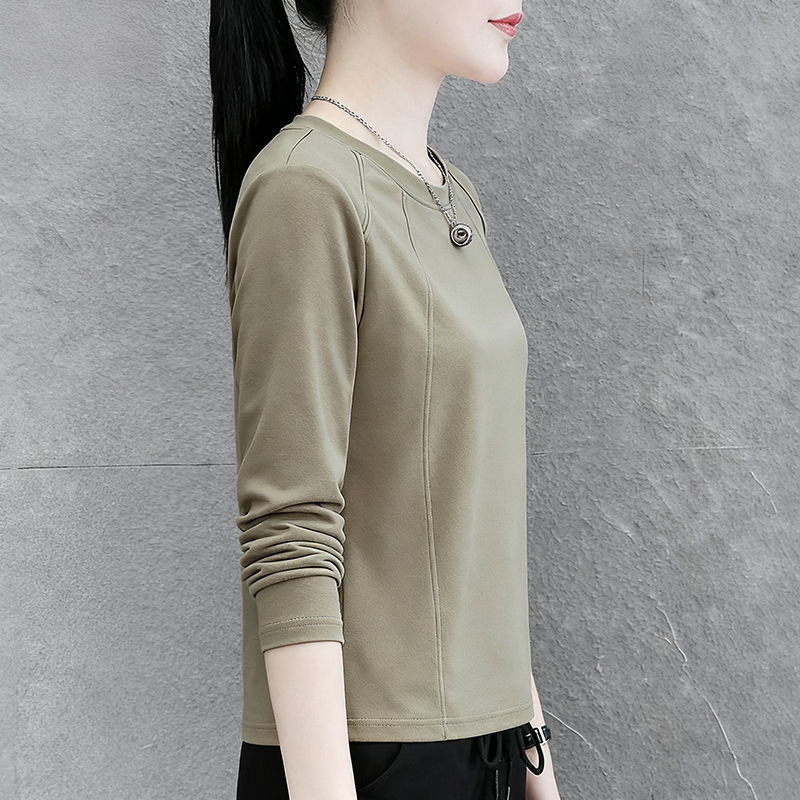 辣妹修身 打底衫 显瘦上衣 T恤女春秋内搭短款 设计感小众正肩V领长袖