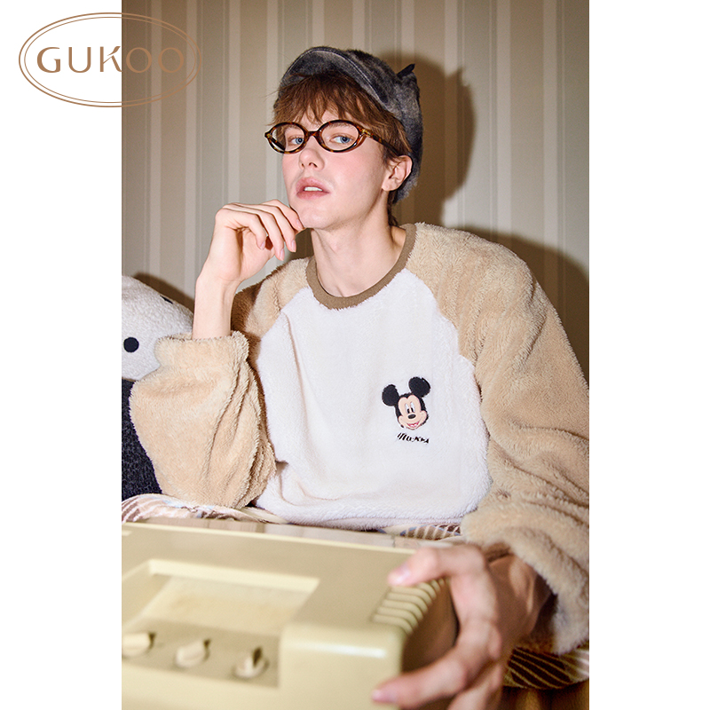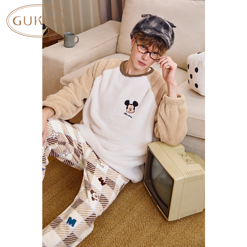 迪士尼系列米奇加绒保暖家居服套装 Gukoo 果壳睡衣男冬款