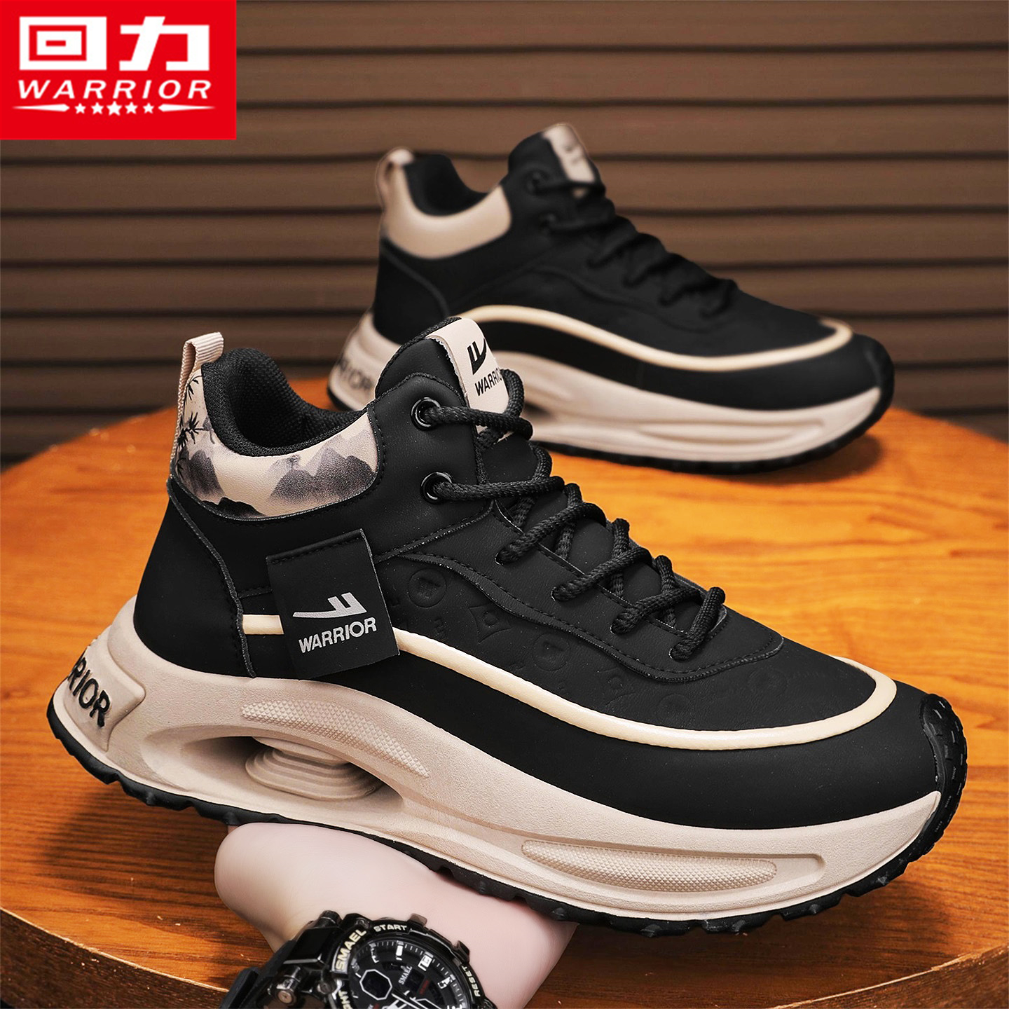 青少年户外登山跑步休闲运动复古高级感黑色老爹潮鞋 回力男鞋 秋季
