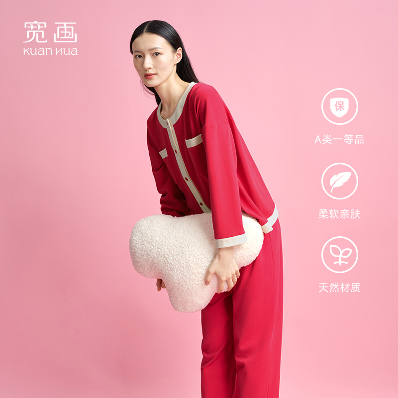 宽画2025款 可外穿舒适 小香风睡衣女士秋冬针织棉莫代尔家居服套装