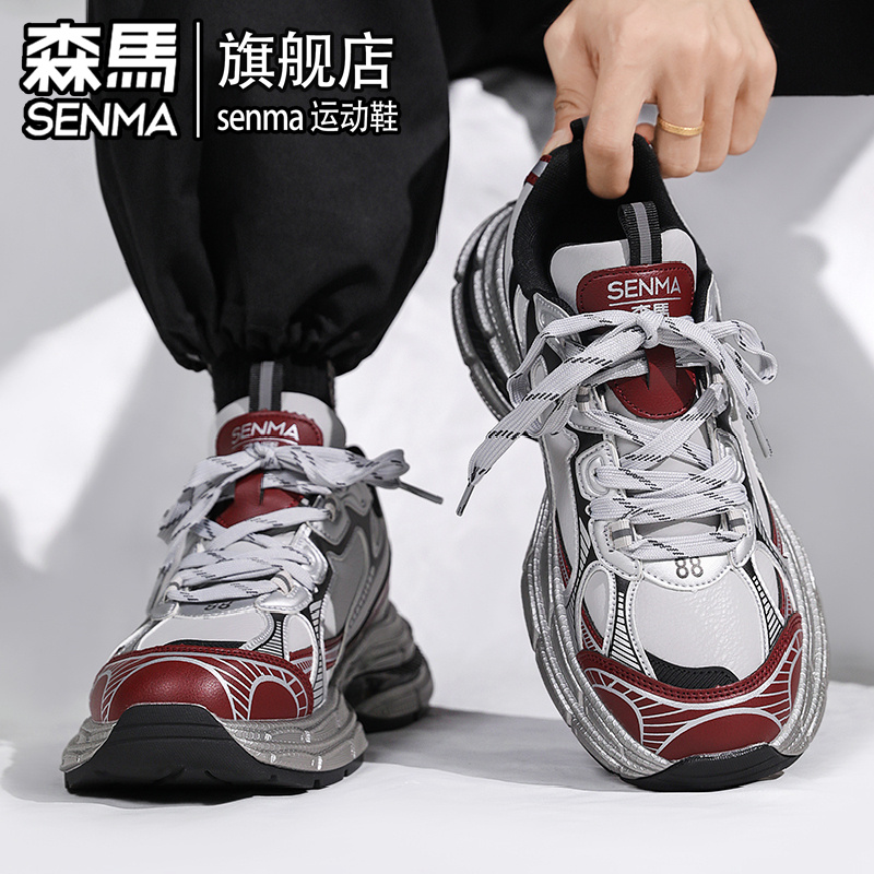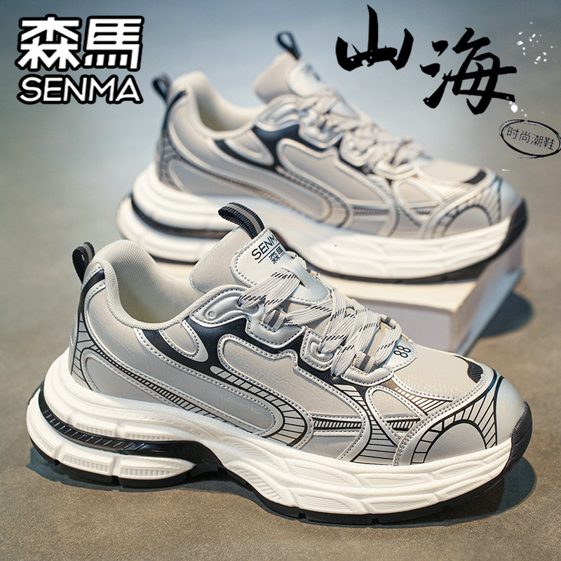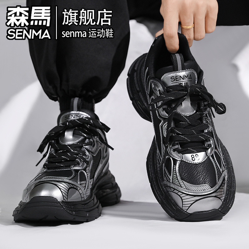 皮面防水跑步厚底增高老爹潮鞋 森马网红爆款 运动休闲男士 秋季 男鞋