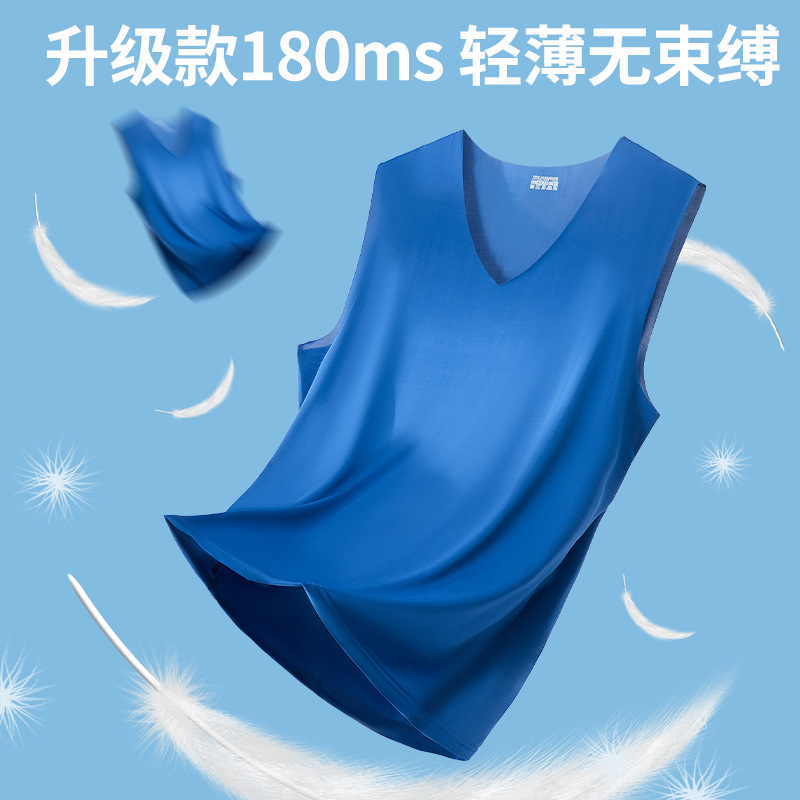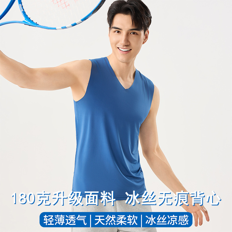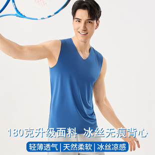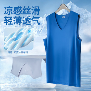 男士 冰丝背心透气速干坎肩打底薄款 v领无袖 新款 夏日 t恤夏季 3件装