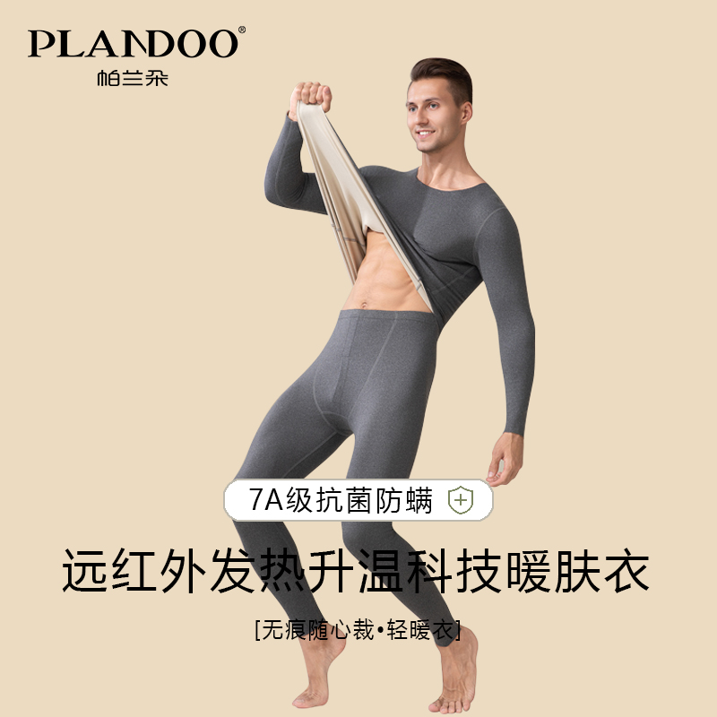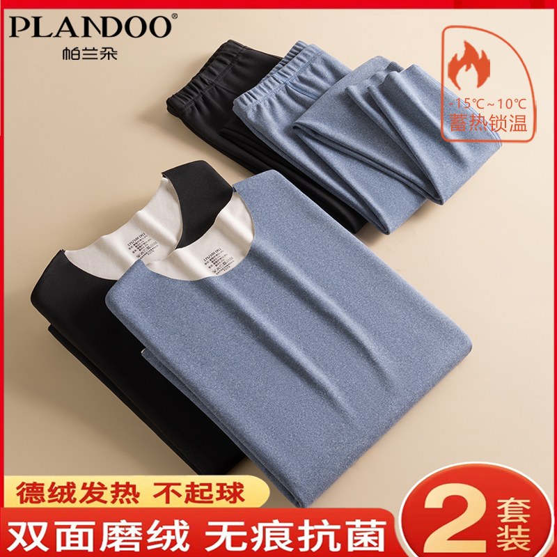 帕兰朵男AB面德绒保暖套装 秋冬打底内穿保暖舒适基础简约纯色套装