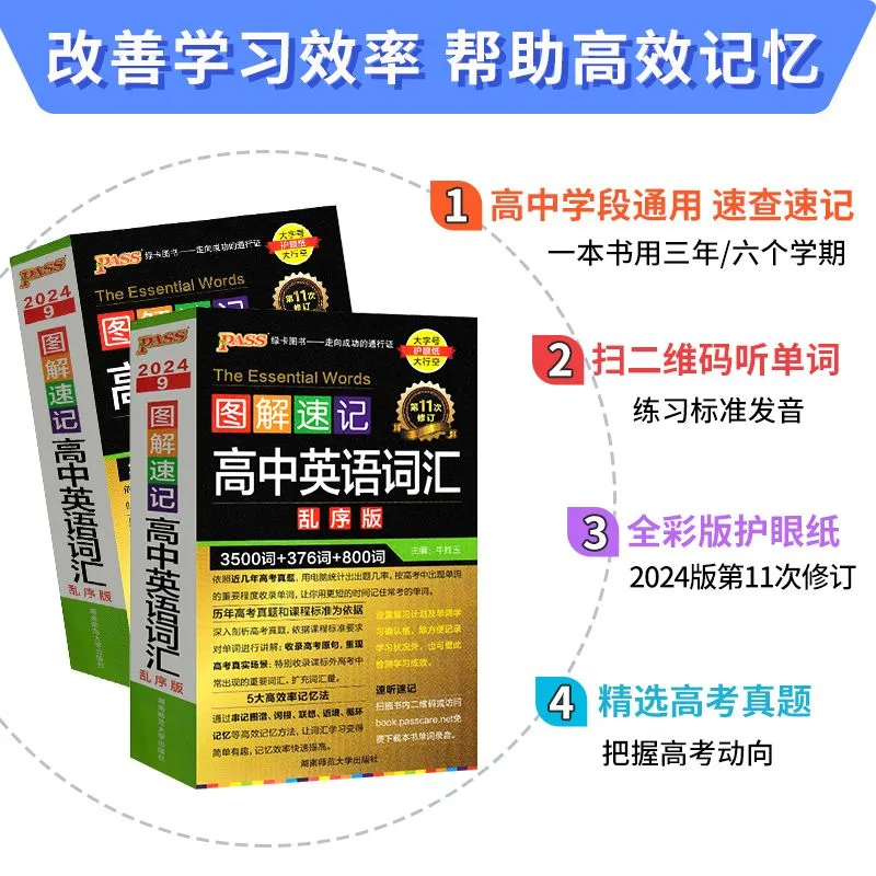 2025备考pass绿卡图解速记高中英语词汇必备3500词乱序版 全套文言文数学物理化学英语政治地理历史高考单词高一高二三随身记口袋书