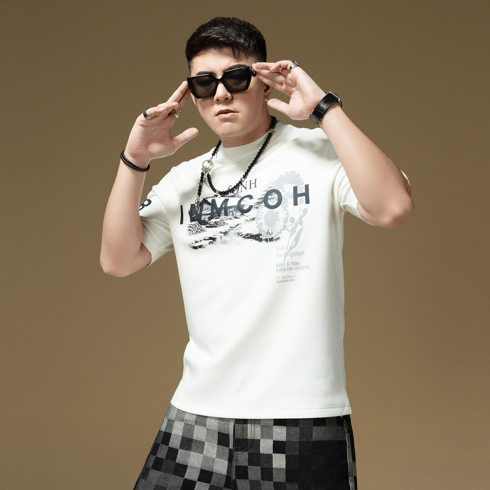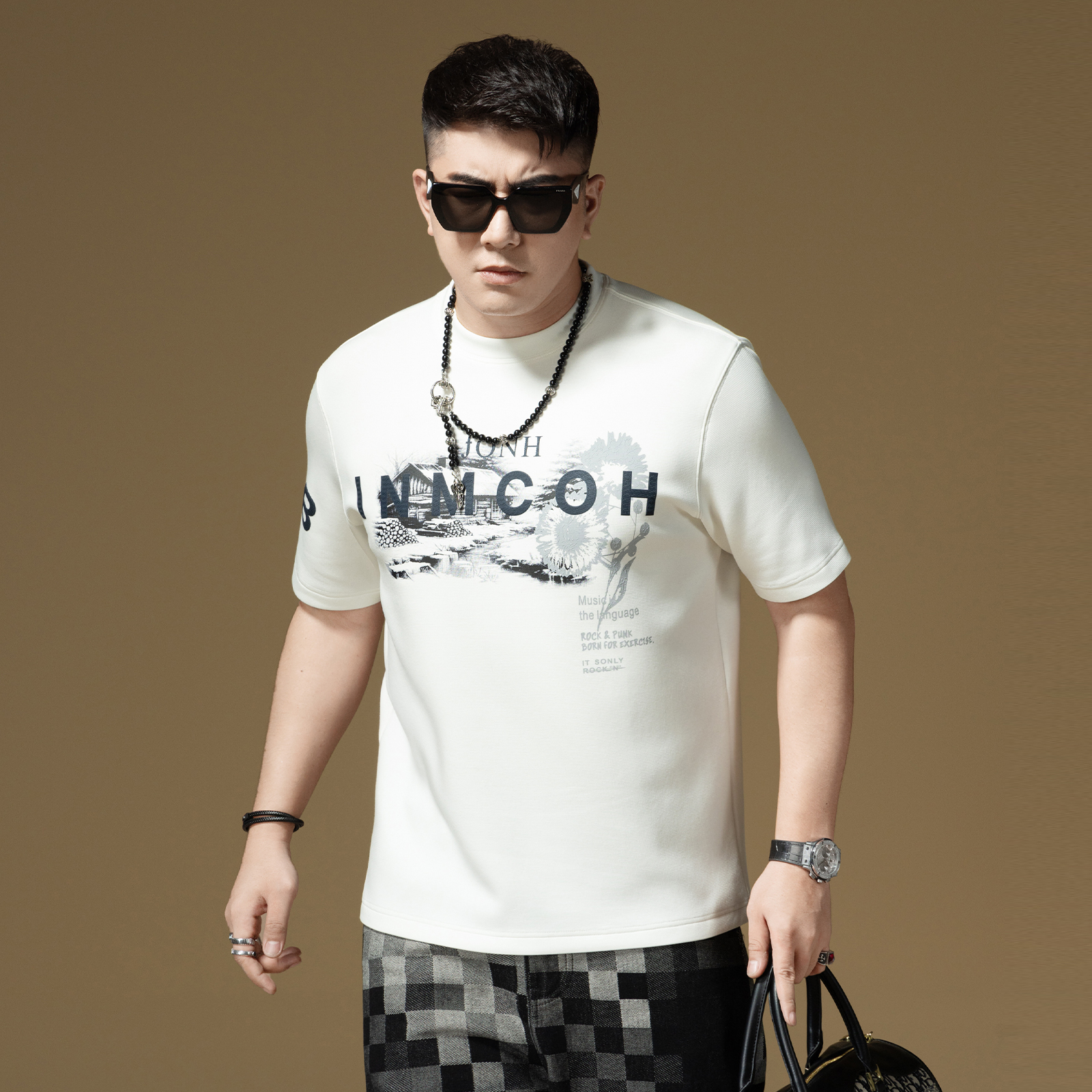 XAKA重磅小领口纯色长袖 上衣 t恤男秋2024卫衣纯棉圆领宽松打底衫