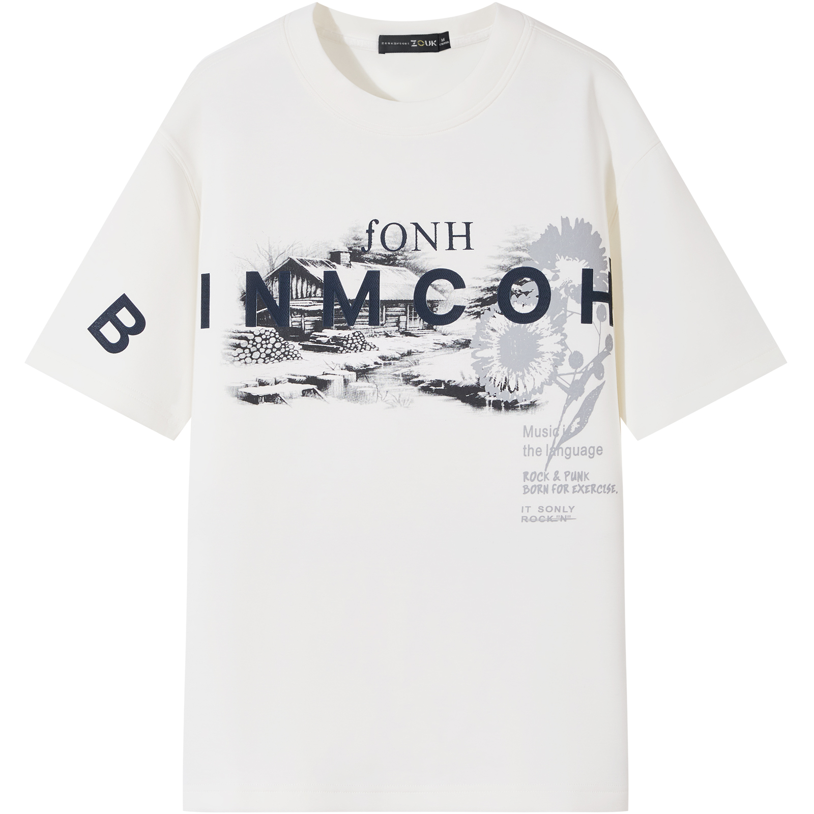 三福2025秋冬男士 街头微落上衣507926 斑驳大字母印花带帽卫衣