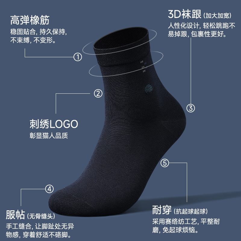 秋季 7a抗菌吸汗男士 短袜 纯棉防臭透气中筒袜秋冬款 亲相见袜子男款