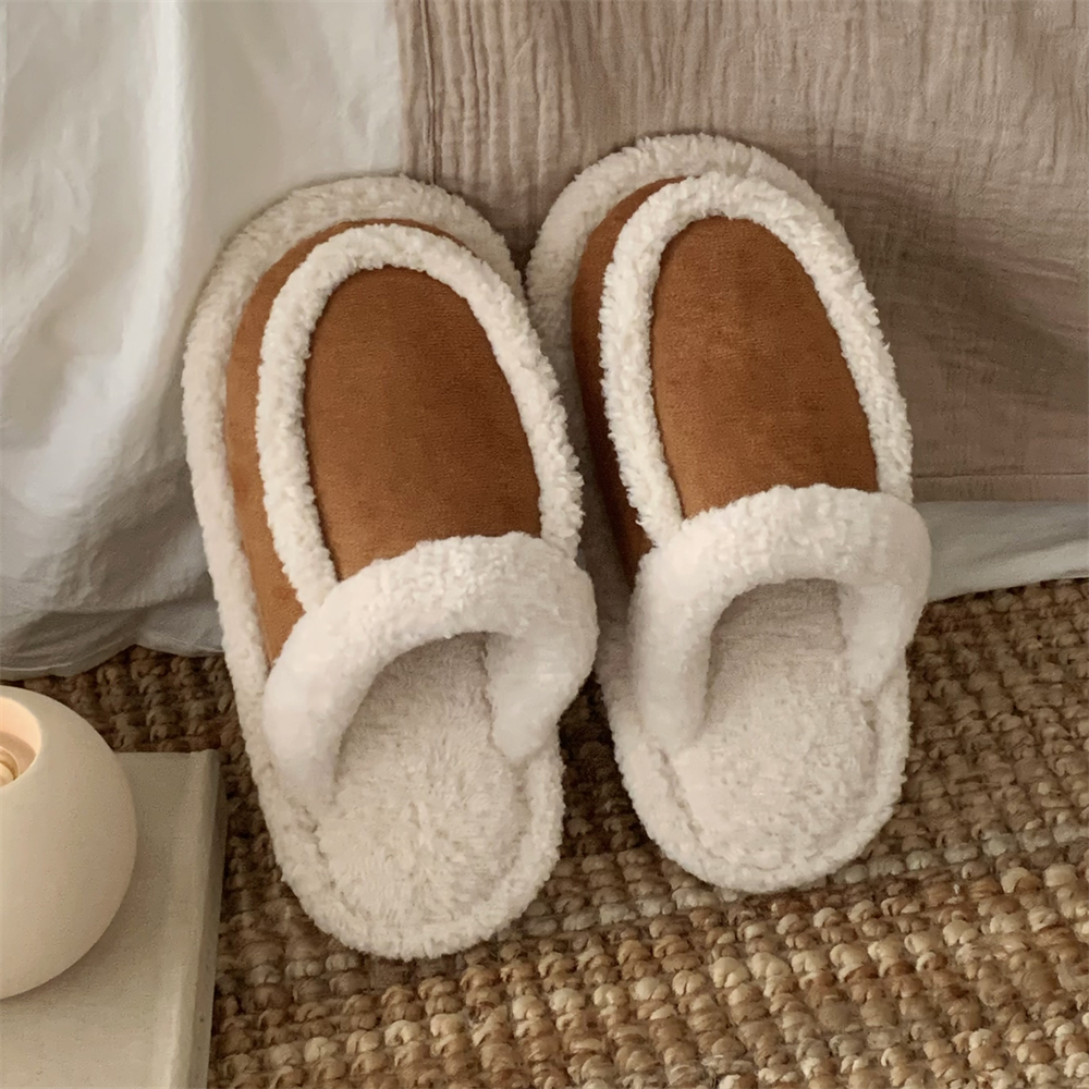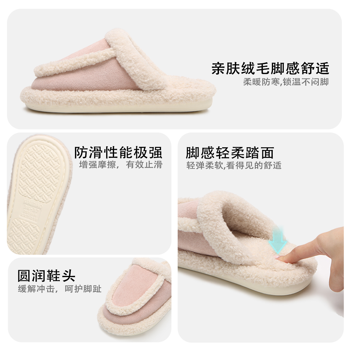 休闲情侣复古撞色防滑居家毛毛鞋 男女冬季 简约地板棉拖鞋 舒适韩式