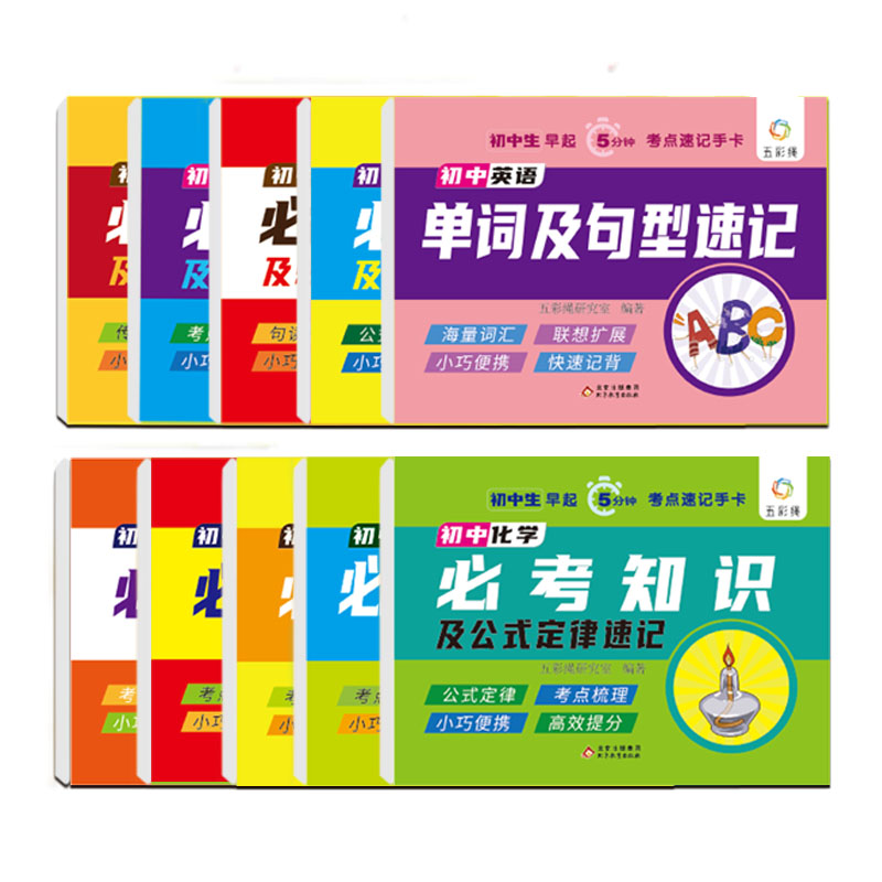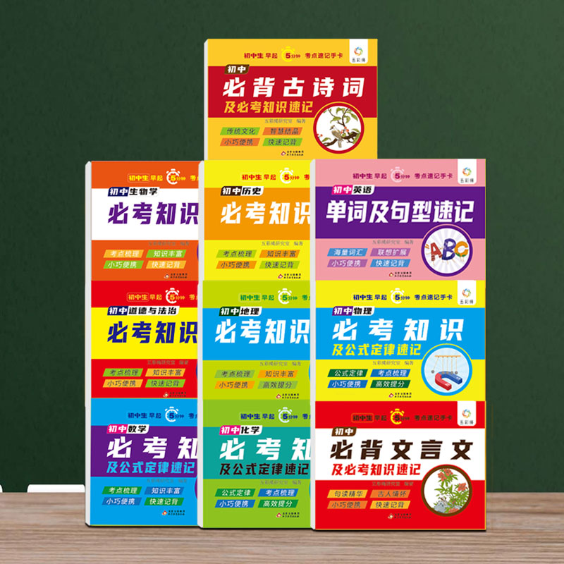 初中生早起5分钟考点速记手卡中考常考知识重难点速查速记忆卡片考点突破手册口袋书中考数学物理化学语文古诗英语知识定理大全