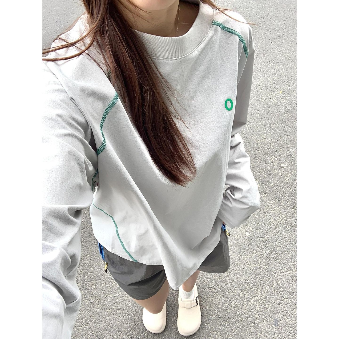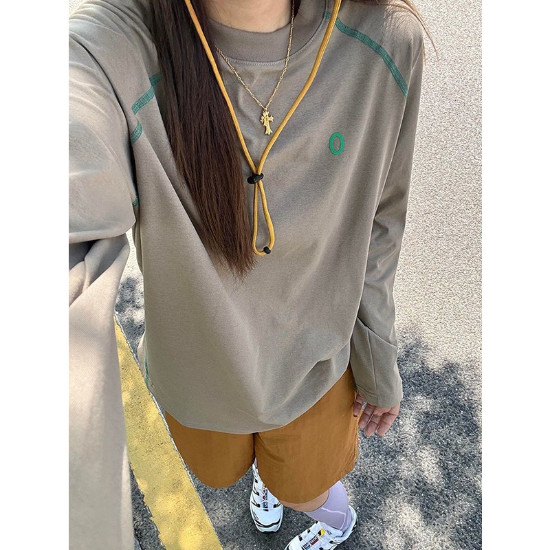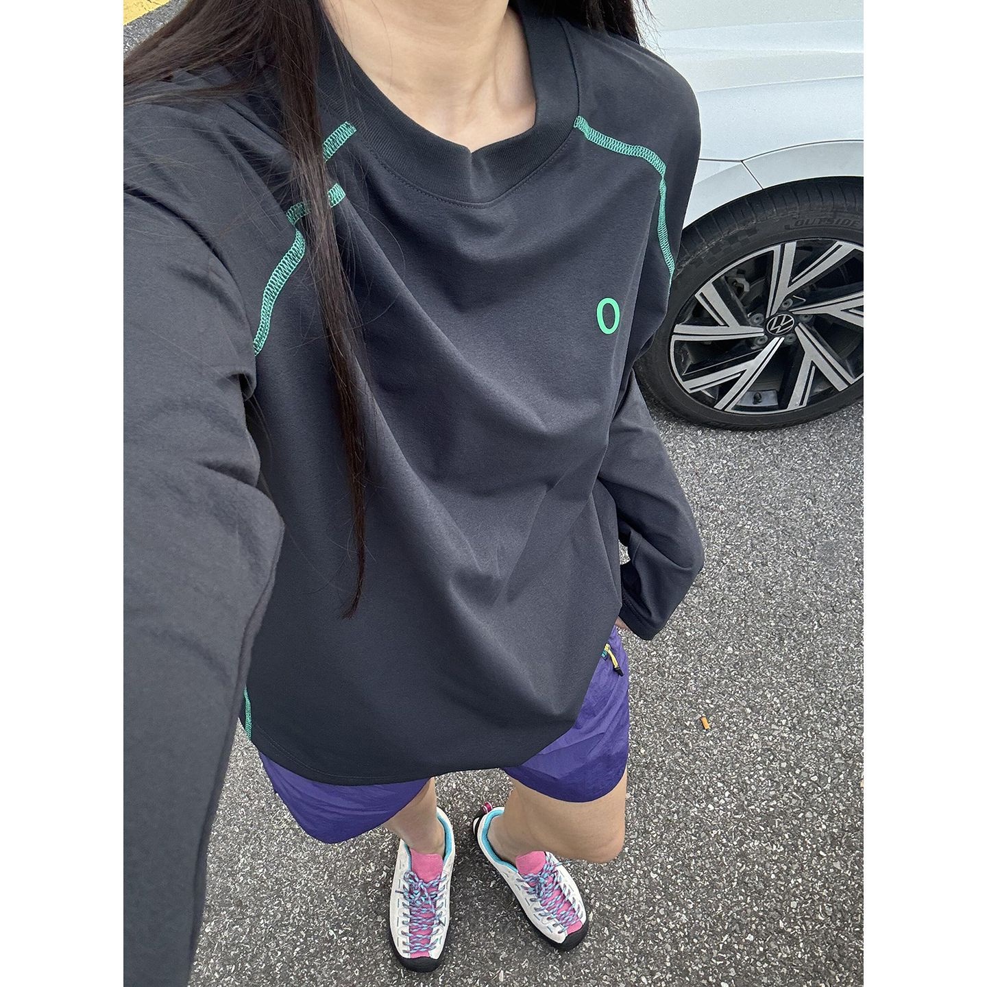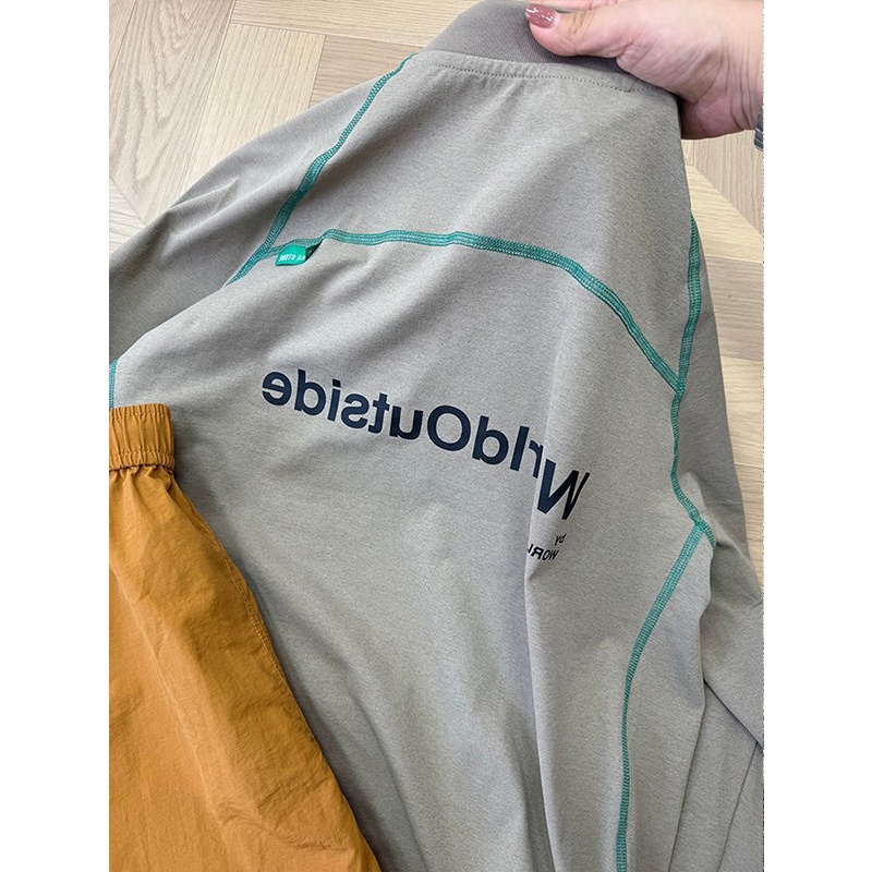 卡其色防晒长袖 户外运动骑行上衣 t恤男女2025秋冬明线撞色插肩袖
