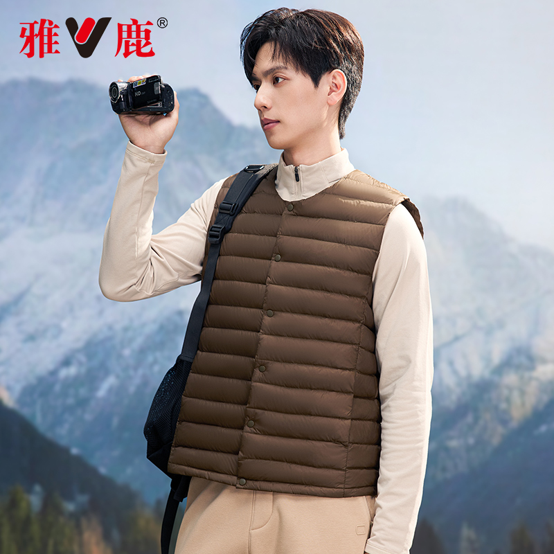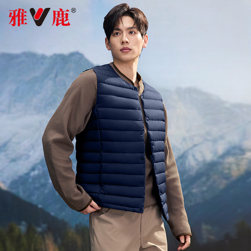 马甲内恤山系百搭户外轻暖 轻薄圆领羽绒大码 雪中飞2025冬新款 男士