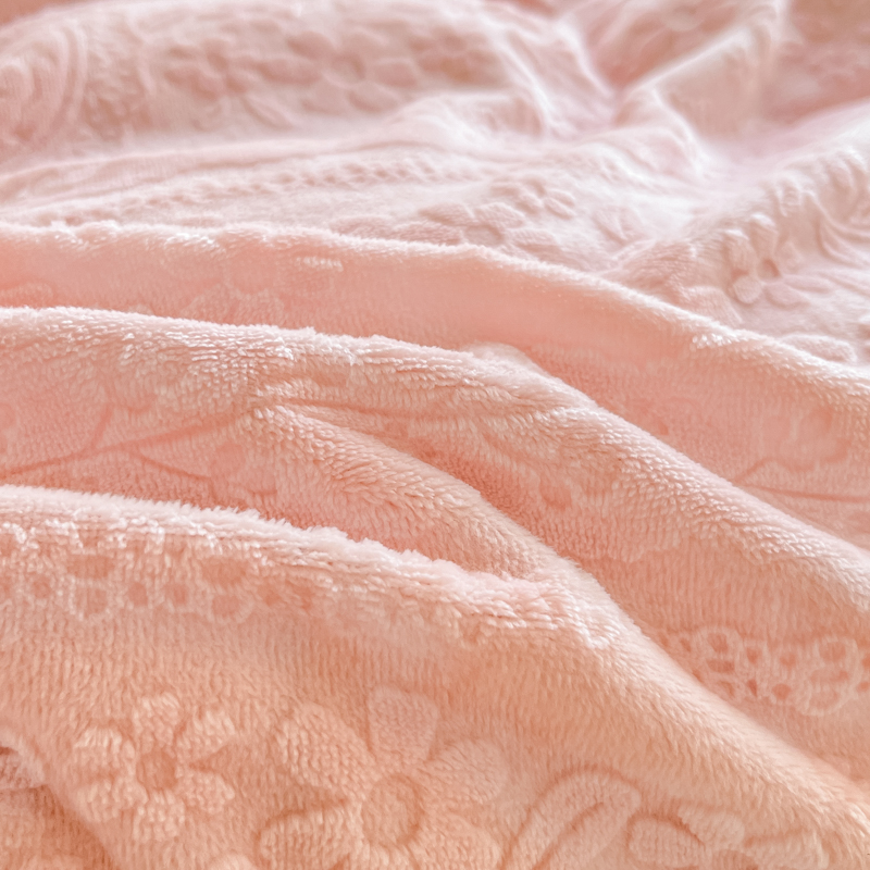 韩版 雕花牛奶绒四件套两米床裙珊瑚绒花边单被套粉色三件套 冬季