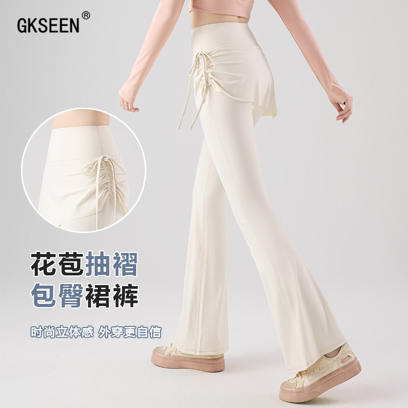 裙高腰遮胯显瘦瑜伽裤 外穿鲨鱼裤 不规则抽绳微喇裤 新款 女2025秋季