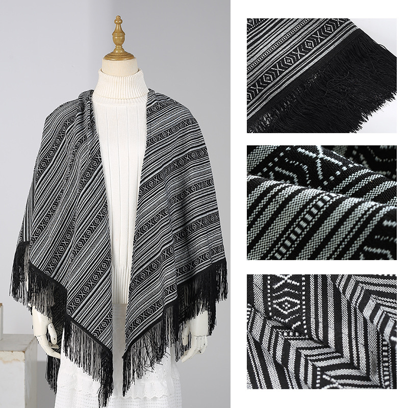 复古民族风披肩几何纹提花 饰好搭三角巾流苏围巾 秋冬保暖装