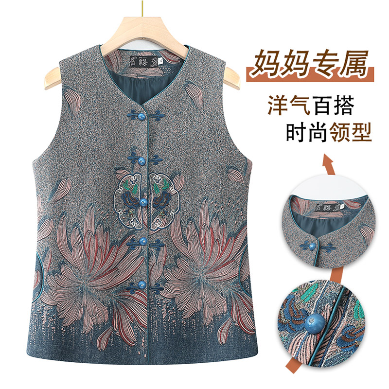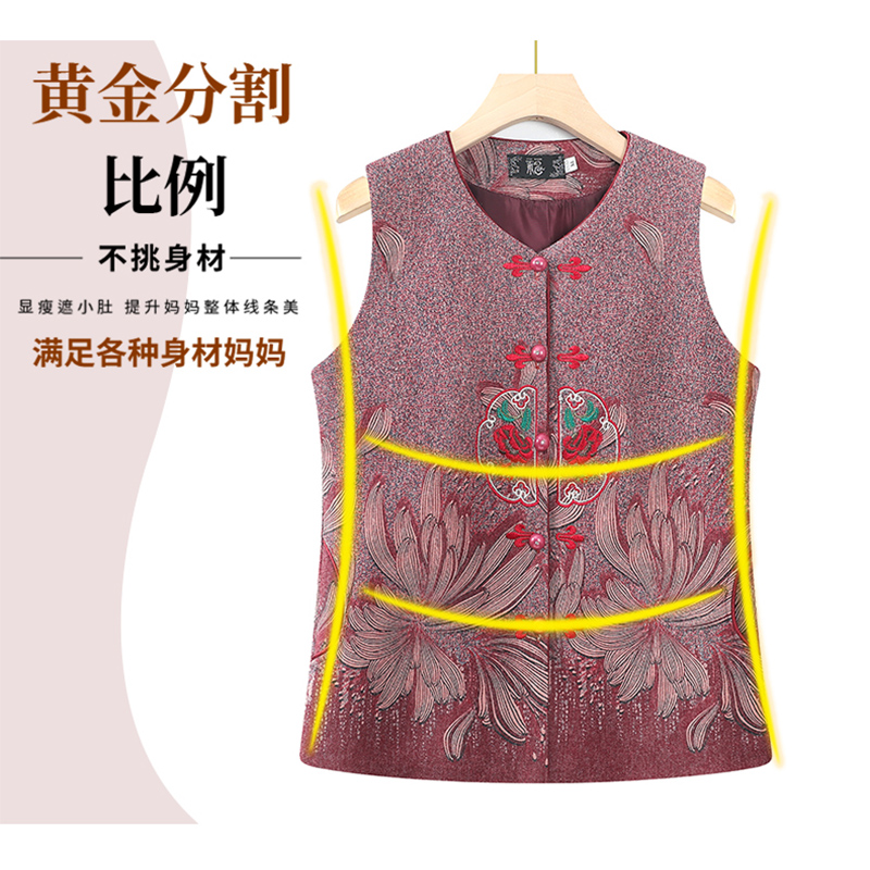 中老年人秋装 马甲女奶奶春秋马夹妈妈外套老太太外穿坎肩洋气 唐装