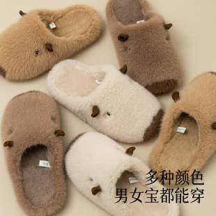 远港儿童卡皮巴拉棉拖鞋 室内毛绒保暖居家中大童亲子 男孩女童冬季