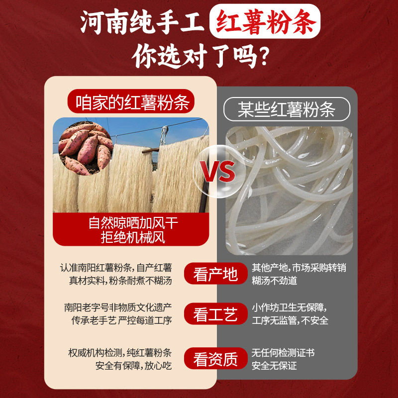 纯红薯粉条正宗手工不添加胶河南农家特产细粉宽粉地瓜酸辣粉粉丝