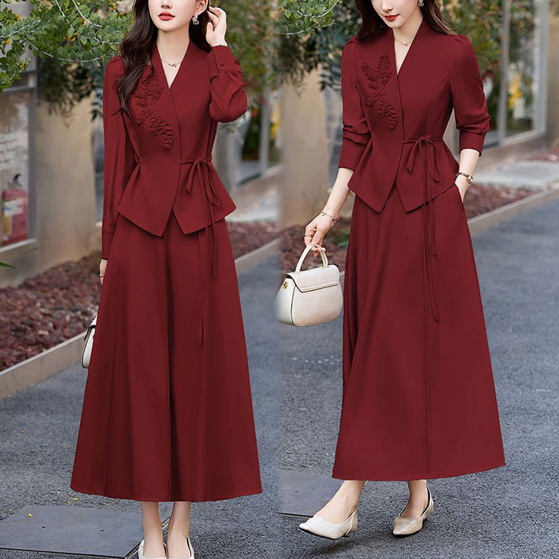 半身裙两件套 别致漂亮收腰衬衫 红色优雅气质套装 裙女2025春秋新款