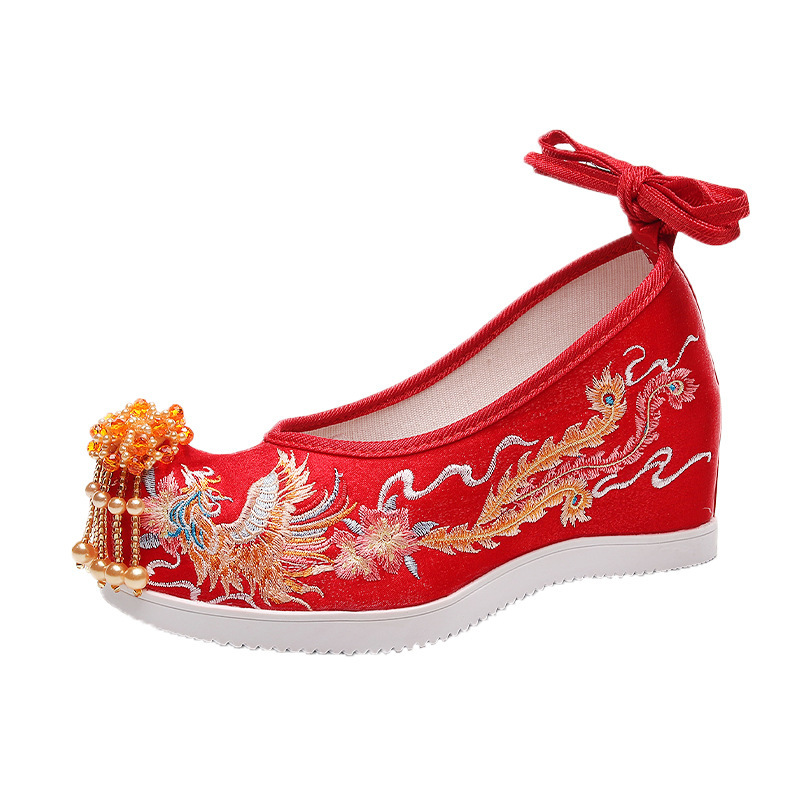 秀禾鞋 古风女汉服鞋 中式 低跟绣花鞋 子 内增高红色新娘鞋 凤鸾婚鞋