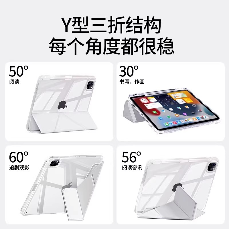 适用于ipadair7保护壳2025ipadpro11寸保护套10适用苹果平板air5带笔槽第9代mini6硬壳4亚克力3 Y折13防弯9.7