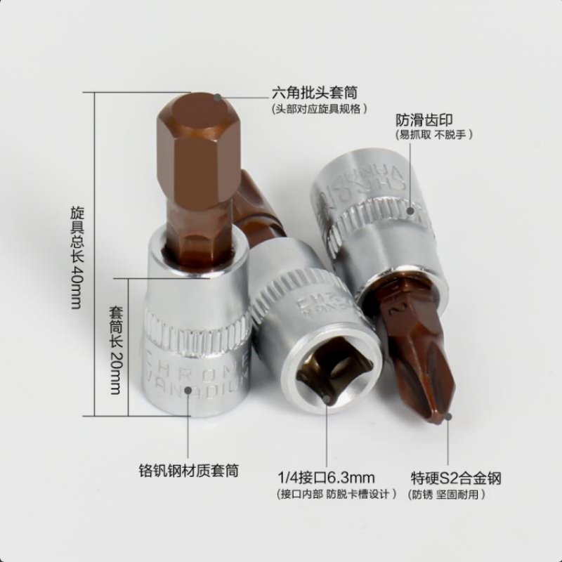 梅花一字十字米字批头1 4小飞旋具套筒压批6.3mm六角五角花型工具
