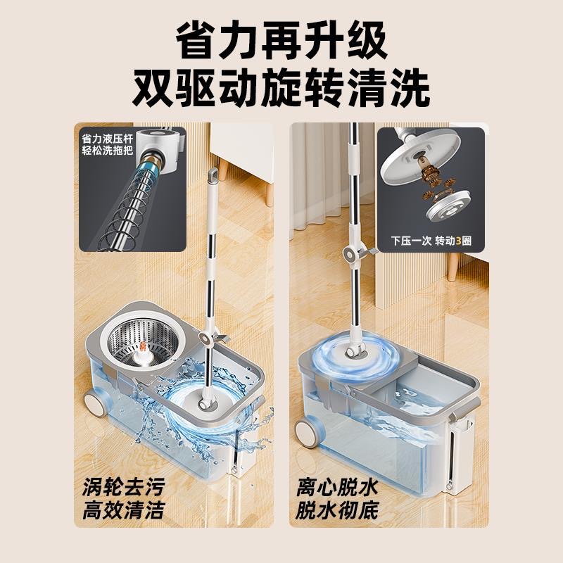 旋转拖把家用甩干地拖自动脱水式 布桶墩布拖净排水双驱动 2025新款