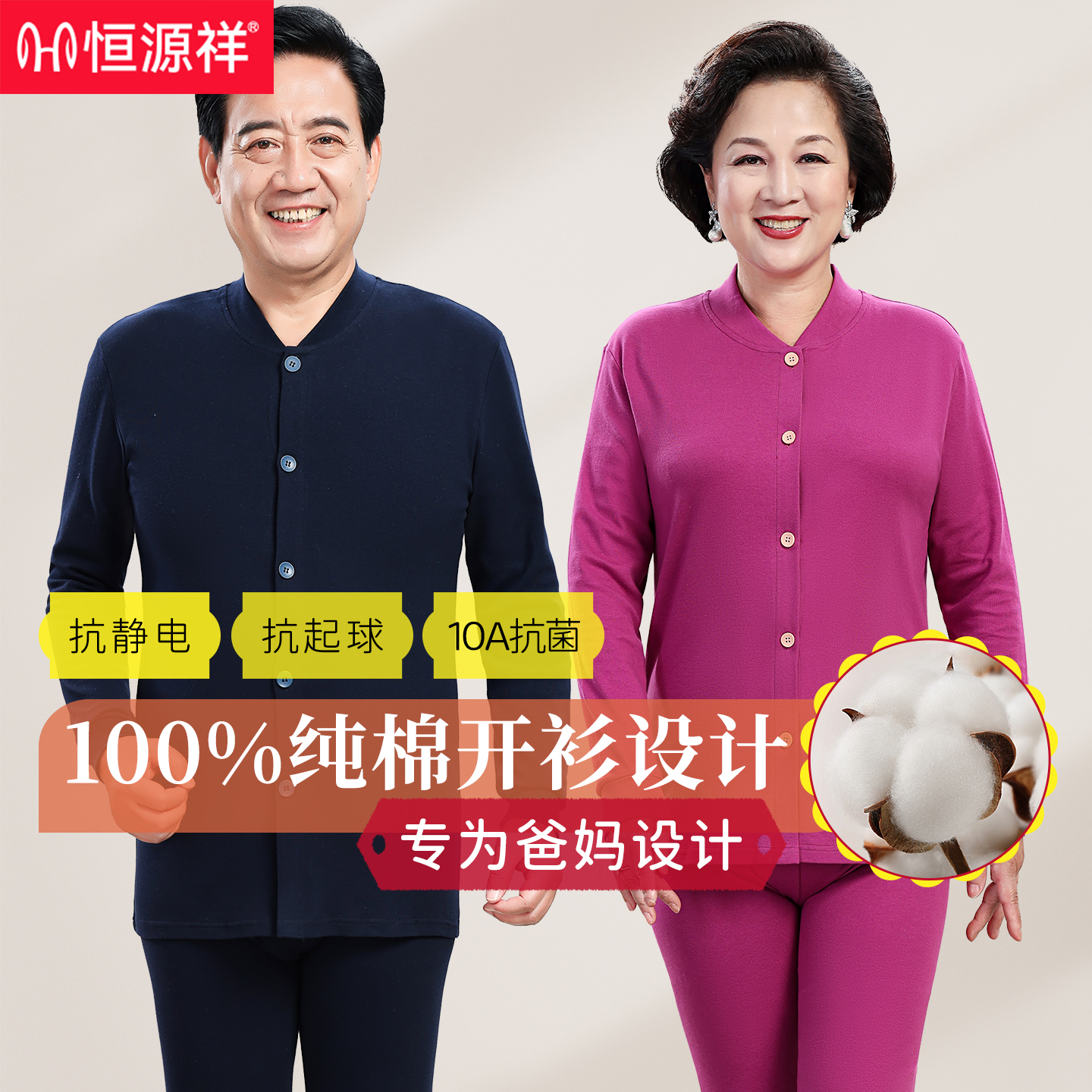 男士 冬季 纯棉抗菌保暖内衣套装 薄款 女开衫 恒源祥中老年人秋衣秋裤
