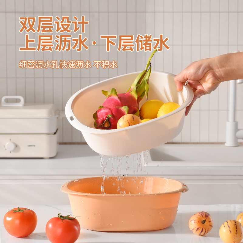 新款 双层洗菜篮沥水篮塑料加厚菜篓家用厨房洗菜盆特大号果蔬收纳