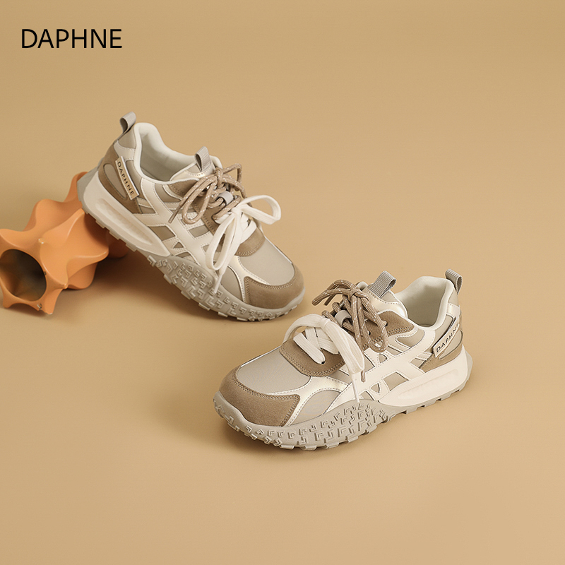 红色运动休闲阿甘鞋 德训鞋 百思图小彩糖25秋新款 女 张予曦同款