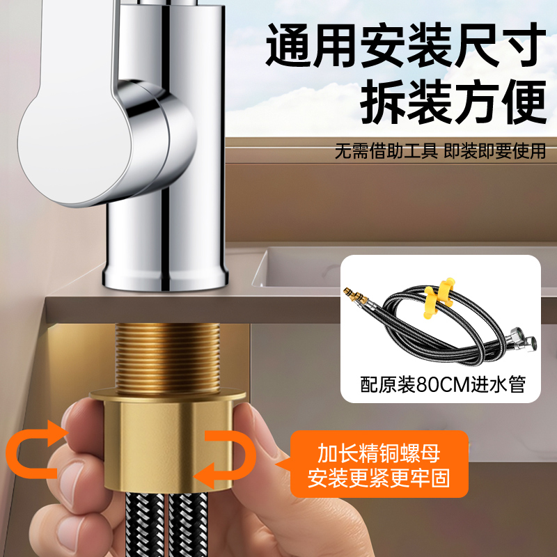 洗脸盆水龙头全铜卫生间水龙头冷热水二合一万向头旋转面盆水龙头