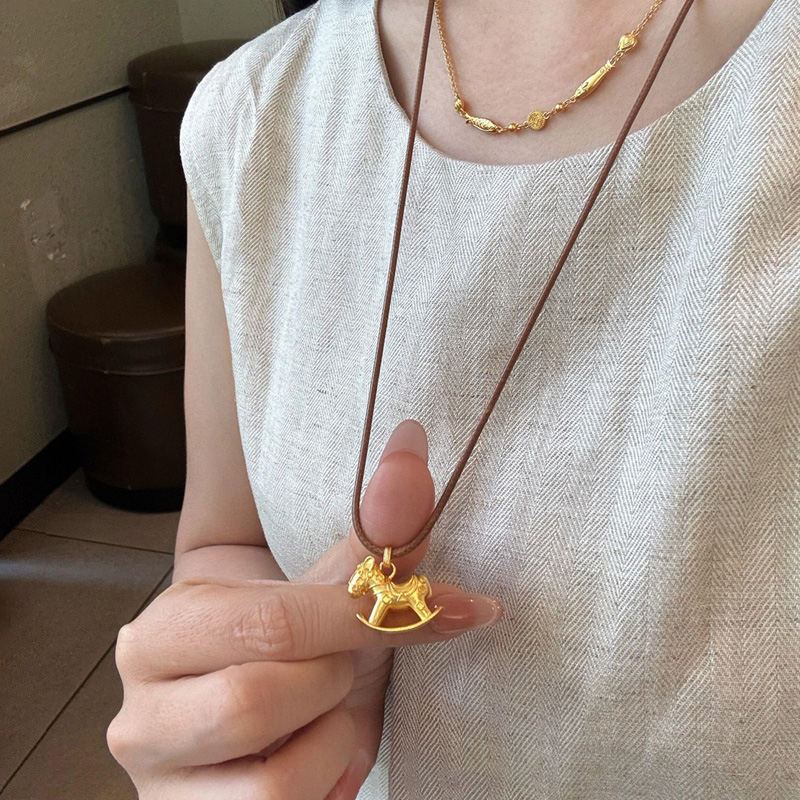 新款 999足银随行转运珠天然沉香黑绳项链女纯银编织锁骨链设计感