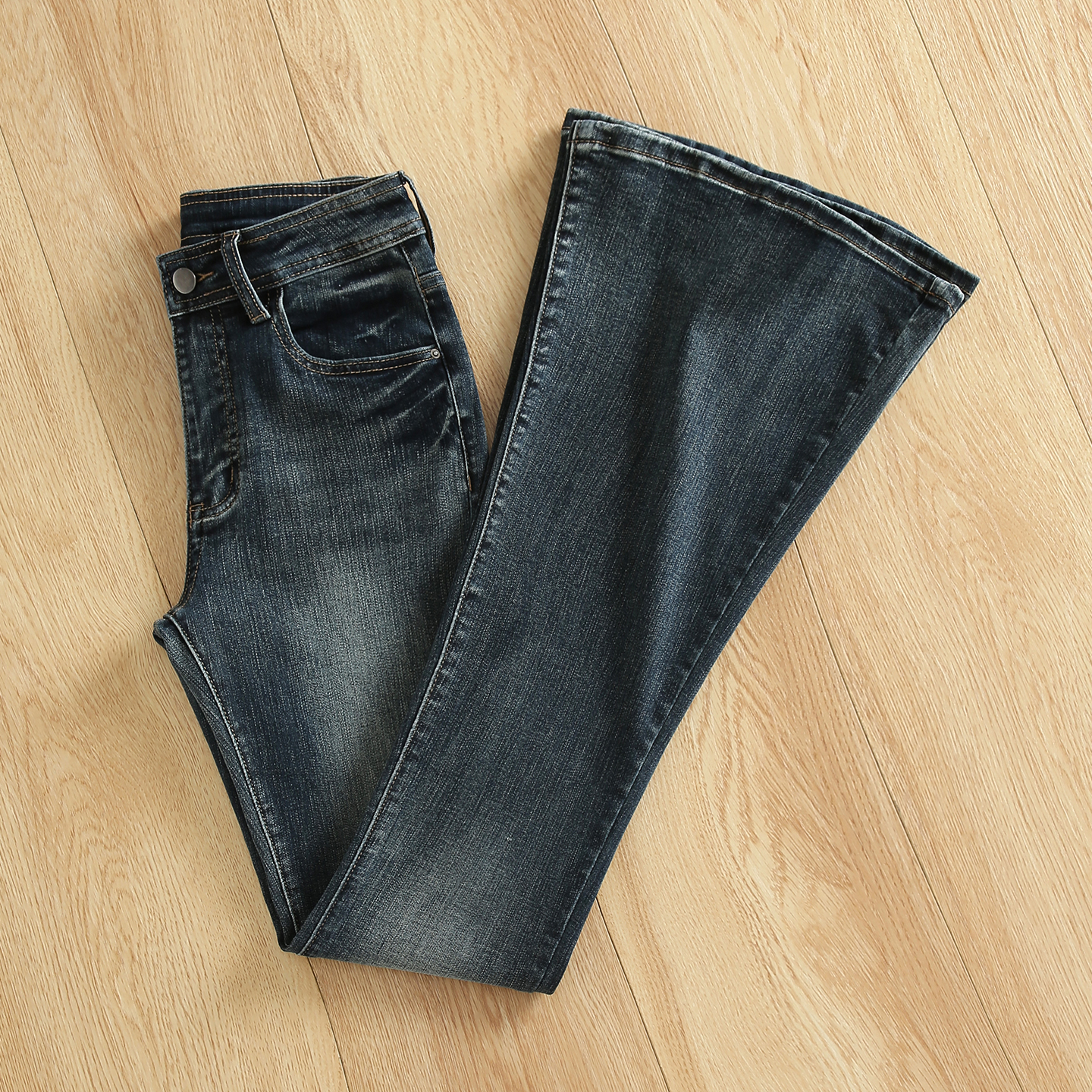 显瘦紧身弹力喇叭裤 蓝色时尚 高腰修身 女2025新款 潮流微喇牛仔裤