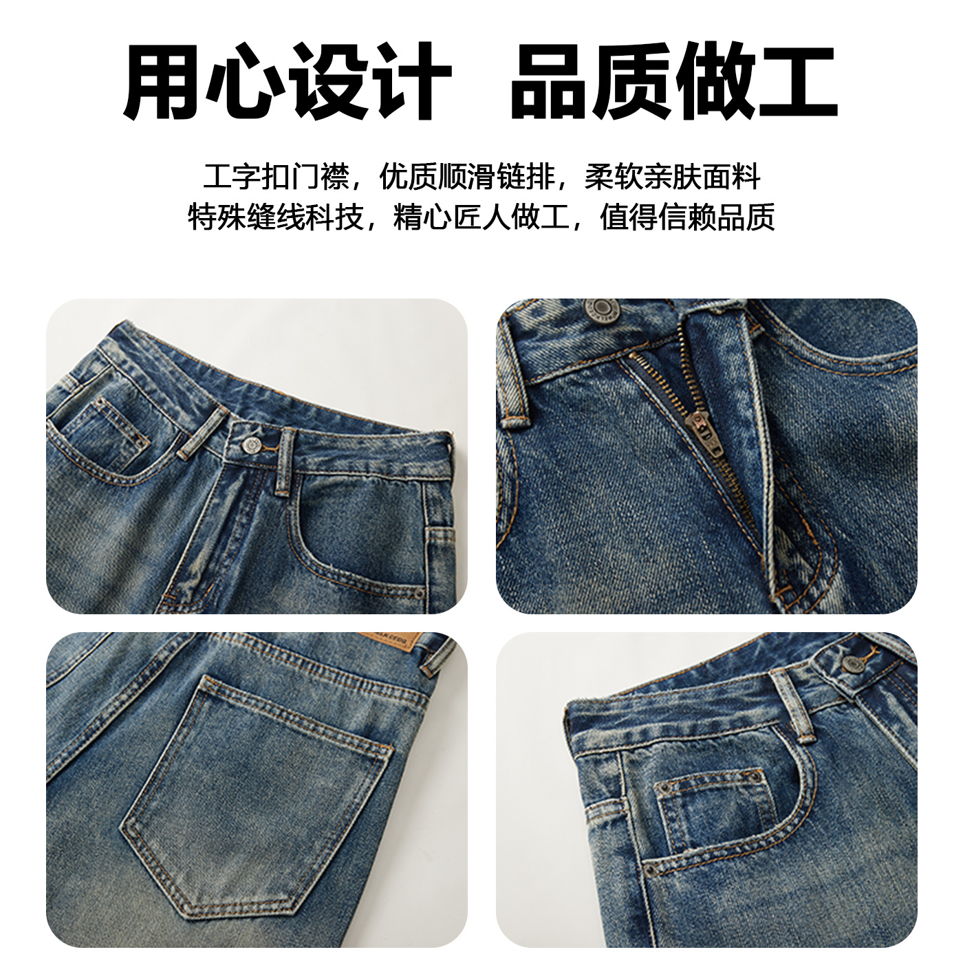 25年新款 长 水洗舒适宽松牛仔裤 男秋季 高街复古裤 美式 定制裤
