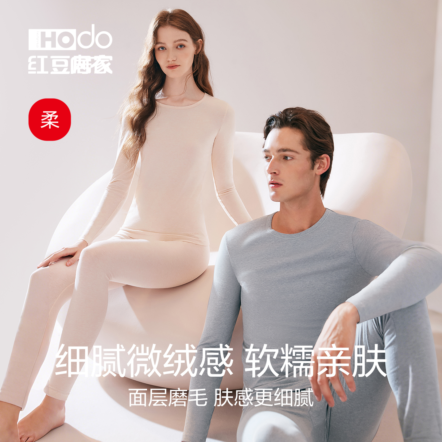 打底磨毛男女秋衣秋裤 红豆绒H1棉花糖情侣保暖内衣套装 新疆棉薄款