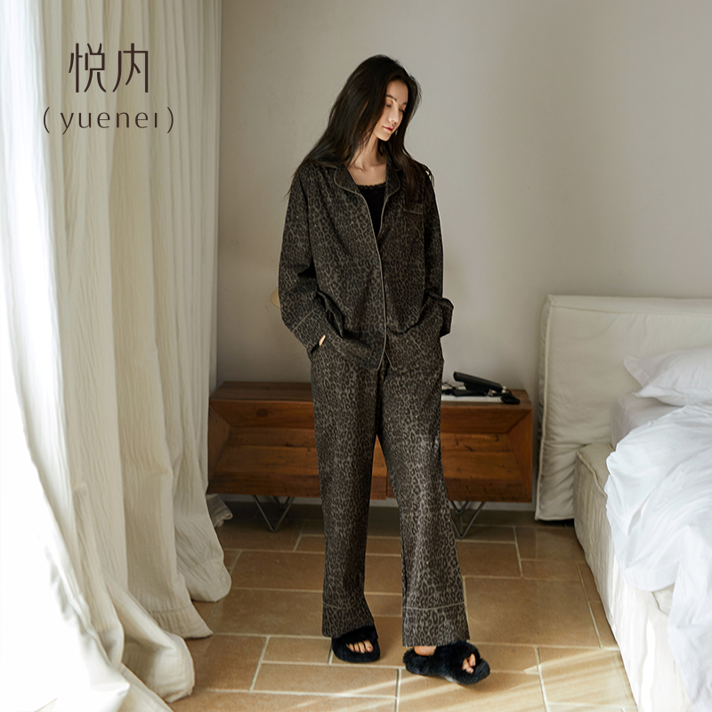 家居服休闲时尚 纯棉长袖 豹纹高级感可外穿出门 春秋季 悦内睡衣女款